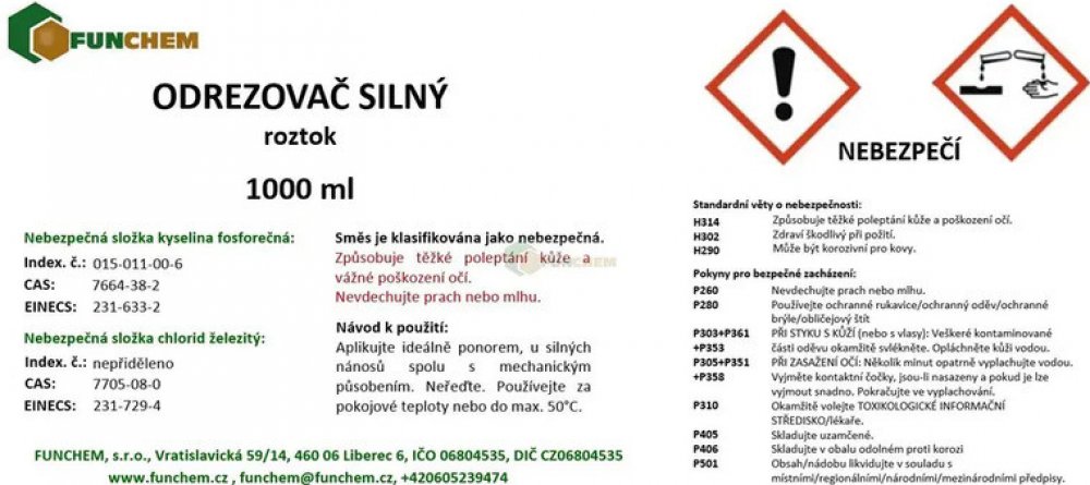 Bezoplachový odrezovací prostředek se stabilizátorem účinku, vysoká účinnost při odstranění koroze. Odrezovač se nanáší nátěrem, nástřikem nebo ponorem. Při silnějším zkorodování je třeba nátěr odrezovačem 2x až 3x opakovat.
