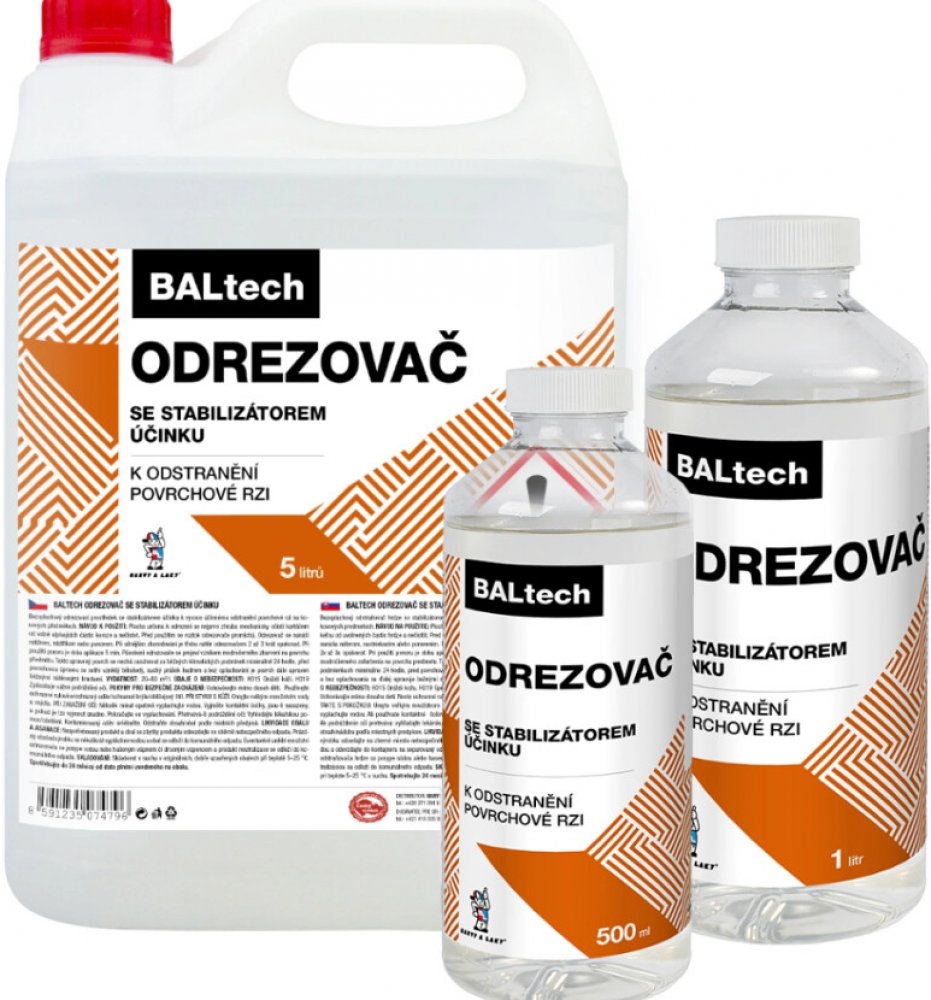 •Bezoplachový odrezovací prostředek se stabilizátorem účinku, vysoká účinnost při odstranění koroze. Odrezovač se nanáší nátěrem, nástřikem nebo ponorem. Při silnějším zkorodování je třeba nátěr odrezovačem 2x až 3x opakovat.