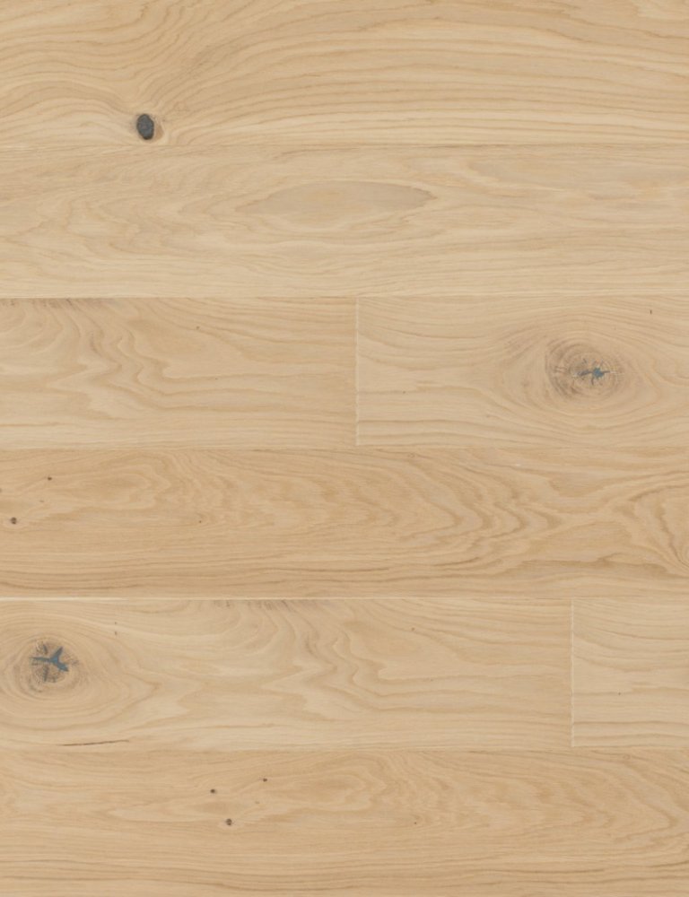 Povrch se vyznačuje typickou dubovou bělí a velkými suky. Struktura dřeva je při kartáčování výrazně zvýrazněna. Kolísání odstínů je vysoké.Povrchová úprava: porcelánový EKO olej broušený