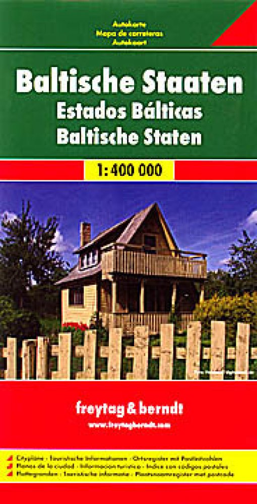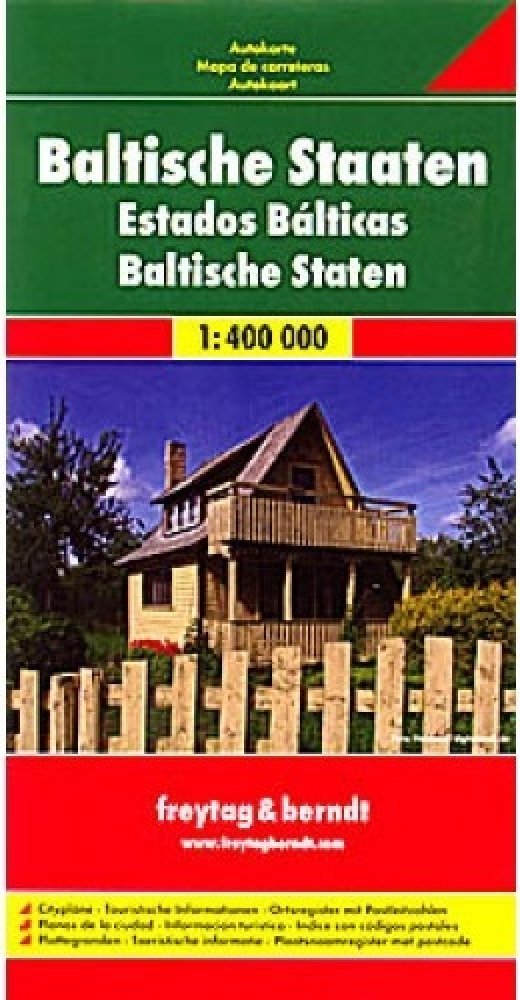 Oboustranná automapa Baltských republik. Základem motoristického obsahu je podrobná silniční síť s kilometráží, čísly silnic, zvýrazněny jsou placené úseky, nebezpečné klesání a stoupání, sezónně uzavřené úseky. Zaznačeny jsou přírodní a kulturní zajímavosti, úseky s panoramatickým výhledem, pamětihodnosti, možnosti ubytování. Reliéf je zaznačen pomocí stínování. Přiložena brožura s rejstříkem síd...