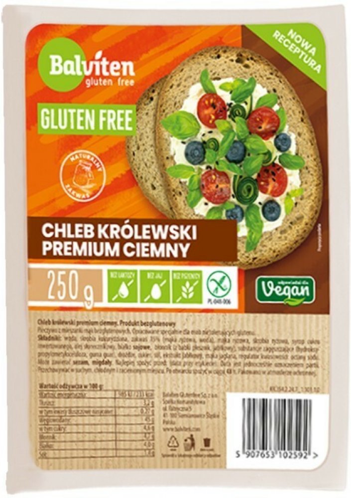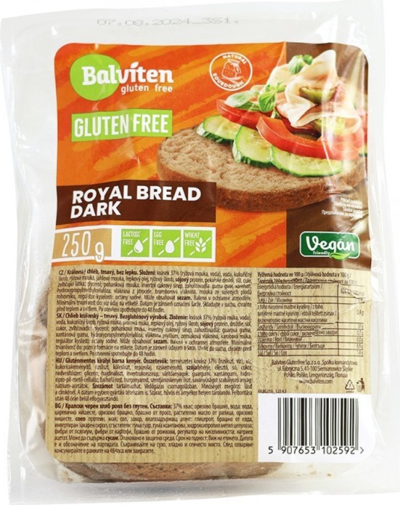 Tento chléb má královskou chuť, je krájený, bez lepku a tmavý. Vhodný pro všechny, kteří chtějí udržovat zdravý životní styl.