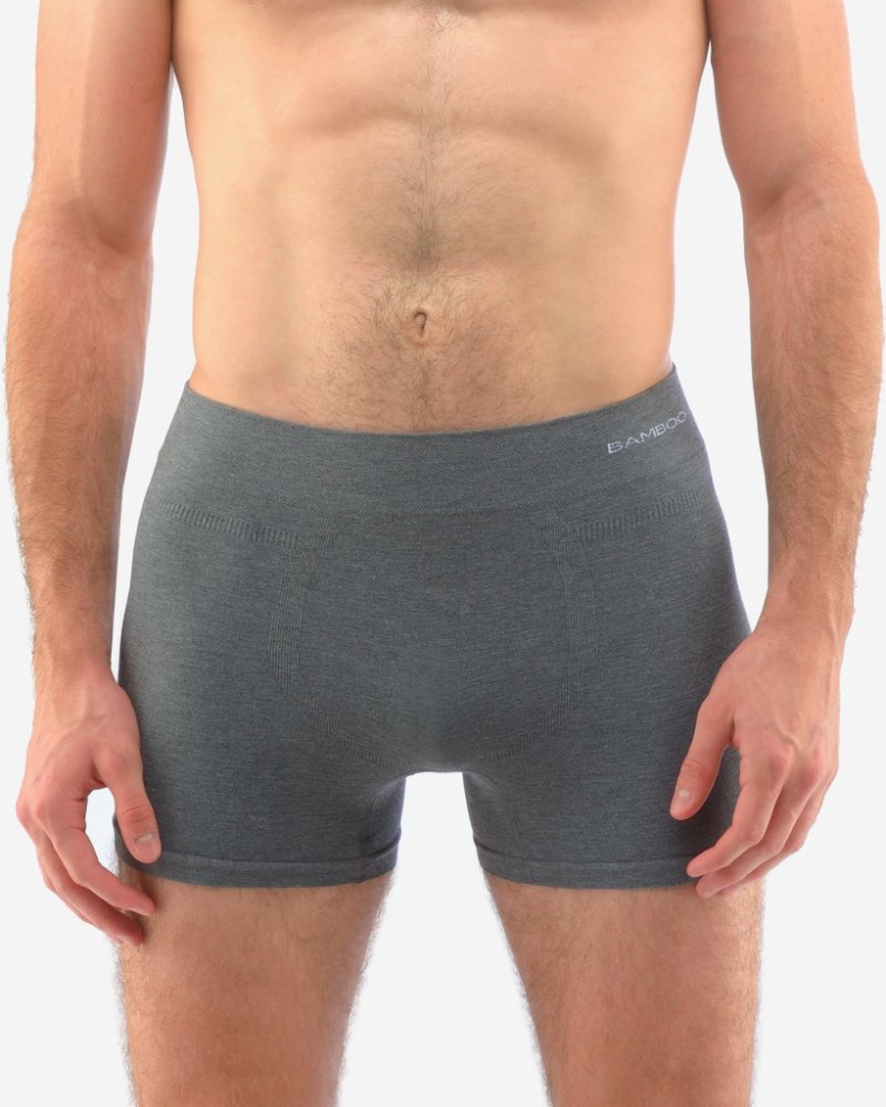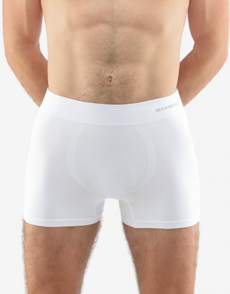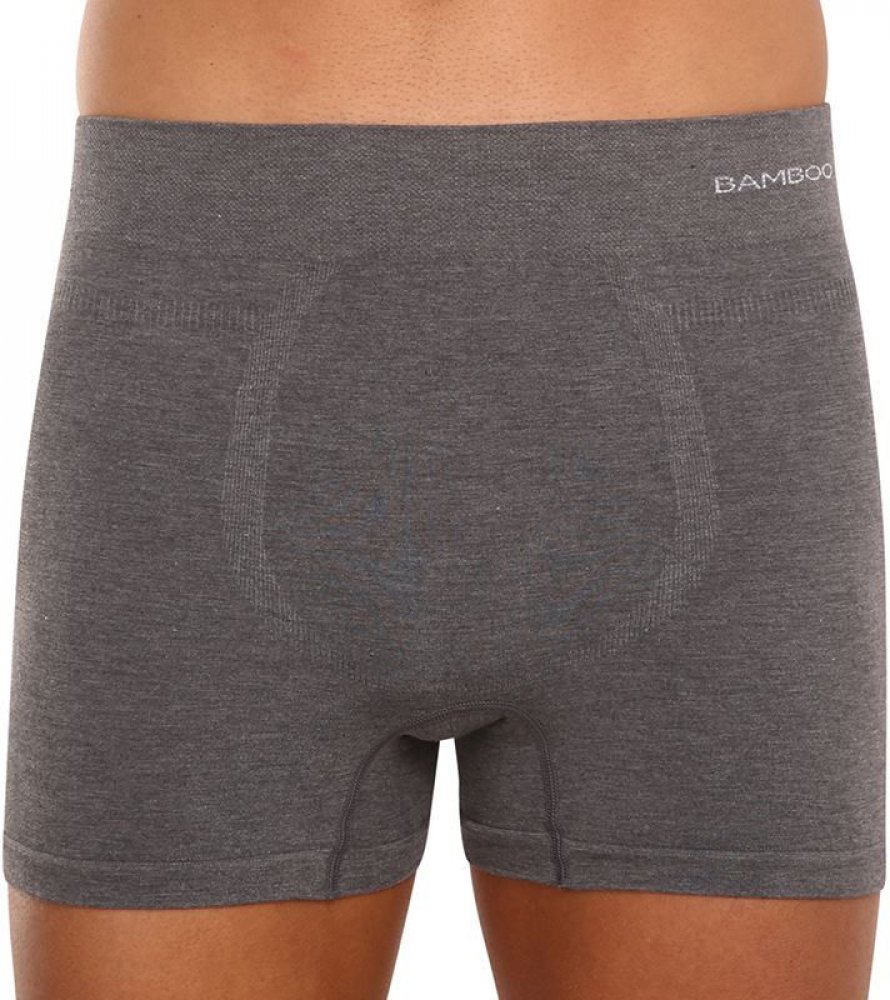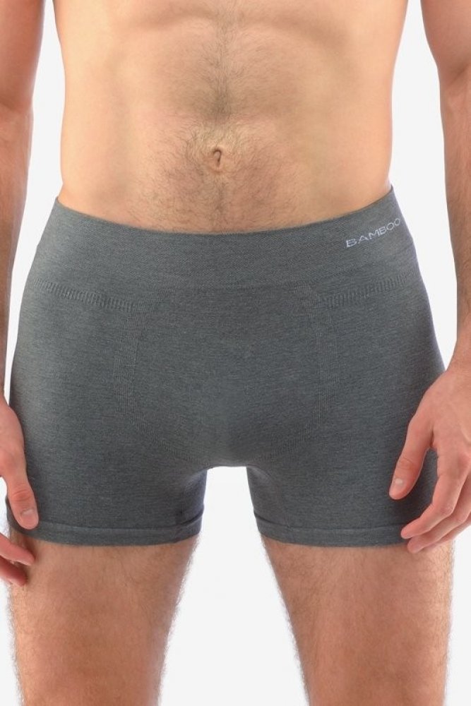 Boxerky s delší nohavičkou, pánské bezešvé prádlo. Pasový kraj je zesílený a zapravený bezešvým způsobem. Nohavičky jsou zapravené bezešvým způsobem. V rozkroku je všitý klínek. Na předním díle jsou boxerky tvarovány vypletenými zónami. Boxerky jsou jednobarevné. V záložce je vypletené logo. Materiál je vyroben z bambusového vlákna, které je doplněno elastanem. Úplet je velmi jemný a příjemný na n...