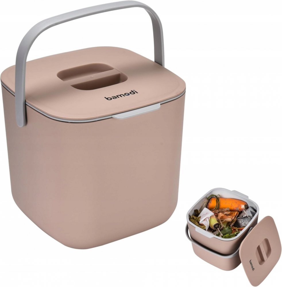 Bamodi Koš na organický odpad, filtr s aktivním uhlím proti zápachu a pachům, ideální do kompostu nebo jako malá nádoba na odpad v koupelně, plast, broskvová barvaInformace o produktu