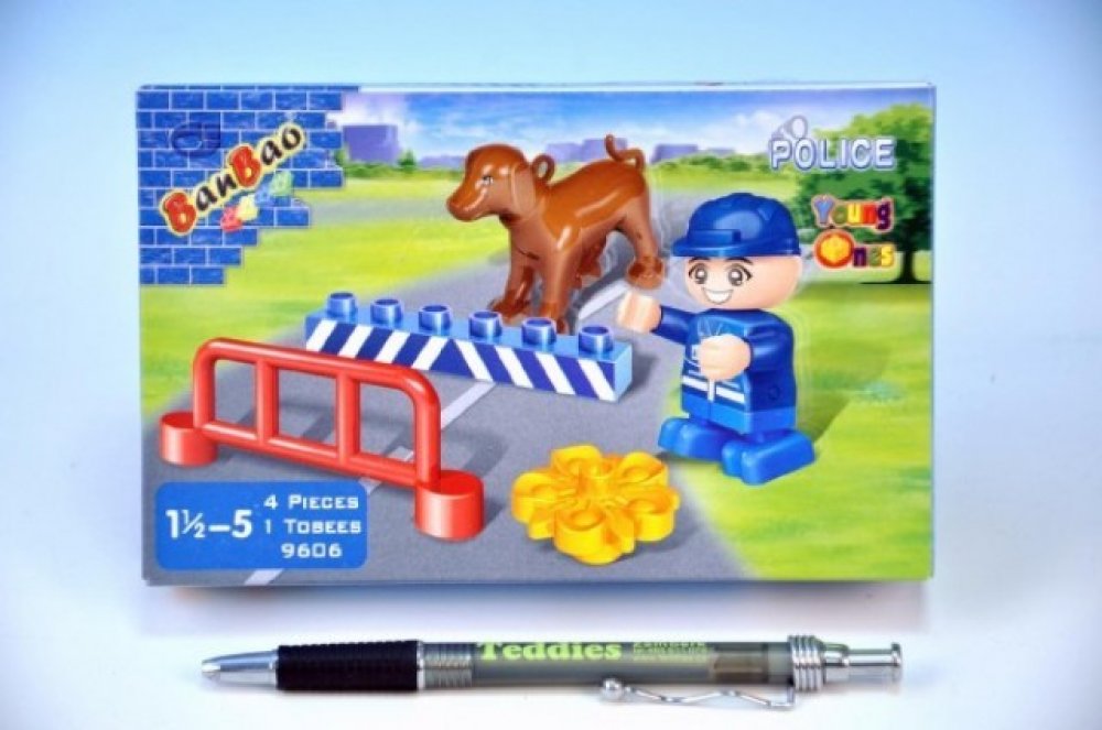 Tato BanBao stavebnice je opravdu určena i pro ty nejmenší, díky jednoduchosti jejího sestavení. Součástí balení je ToBees figurka policisty, jeho věrný pes a policejní zátarasy. Sada je vhodným doplňkem ke stavebnicím BanBao. BanBao je stavebnice, která vaše dítě nejen zabaví, ale zároveň i vzdělá. Tato hračka v dětech probouzí zvědavost a procvičuje jejich soustředěnost. Materiál: plast Rozměr b...