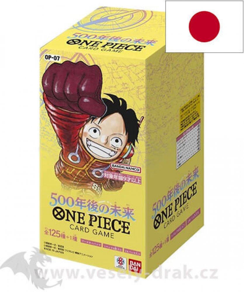 One Piece TCG 500 Years in the Future - OP-07 - Booster Box - japonský box s 24 boostery. V každém balíčku je 6 náhodně namíchaných karet edice 500 Years in the Future. Rozšiřte svoji sbírku nebo herní balíček o precizní japonské karty.