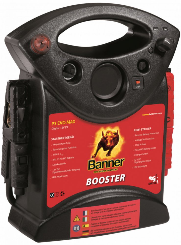 Pomocný startovací zdroj P3 Evo s vyšším výkonem pro všechna běžná motorová vozidla.