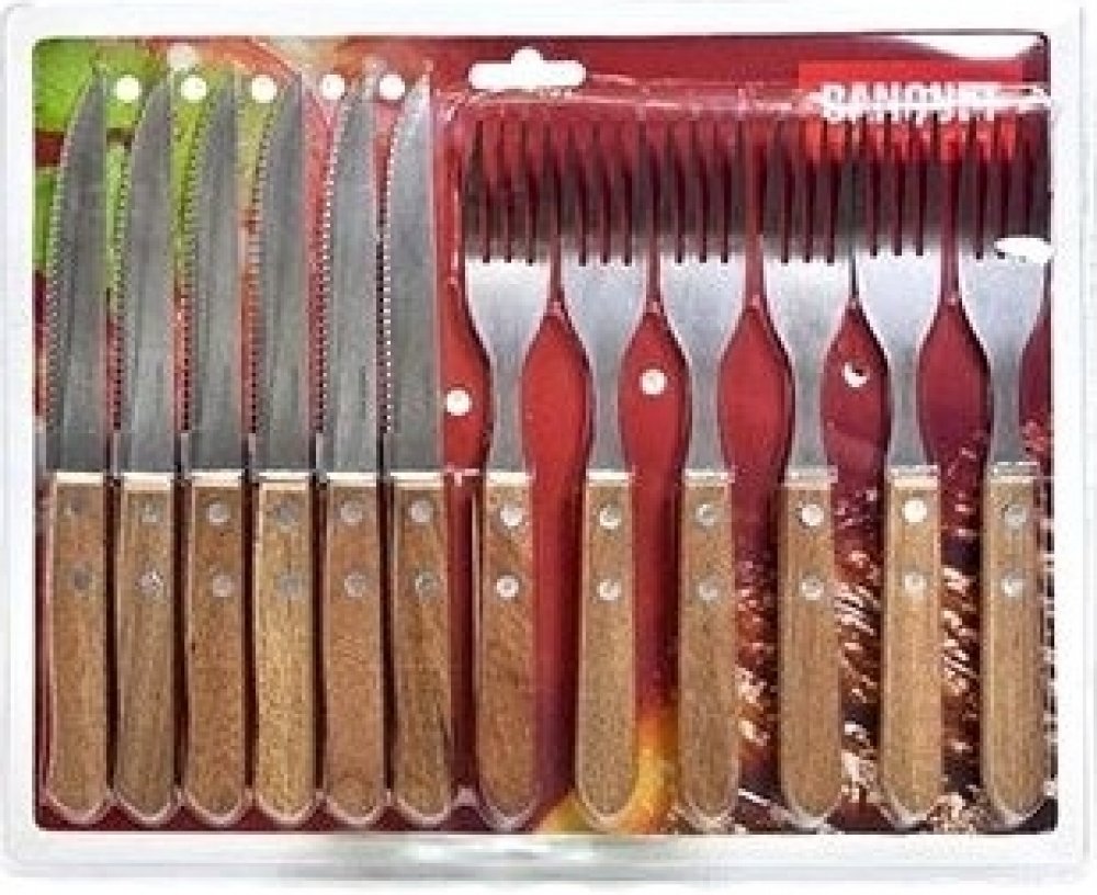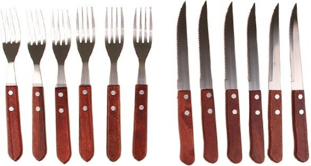 Sada 12 steakových příborů s dřevěnou rukojetí. Příbory nejsou vhodné do myčky nádobí.