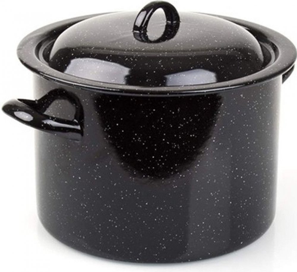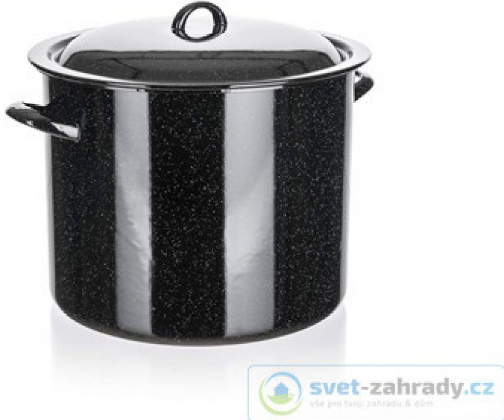 Smaltovaný hrnec s poklicí 14 l, rozměry: průměr 28 cm, výška 22,7 cm. Hrnec lze používat na všechny typy varných desek mimo indukce.