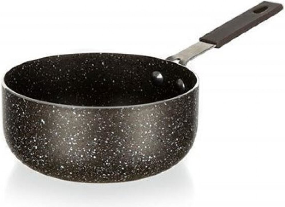 Hliníkový presovaný mini rendlík GRANITE Brown 14 x 3 cm s vnitřním 2vrstvým nepřilnavým povrchem v hnědé mramorové struktuře. Vnější povrch je opatřen 2vrstvým žáruvzdorným nástřikem v hnědé mramorové barvě. Rendlík není vhodný na indukci. Materiál: Nepřilnavý povrchMyčka: AnoDekor: GraniteBarva: HnědáMateriál držadel: Nerez / silikonIndukce: NeElektrika: AnoUPOZORNĚNÍ: Teplotní omezení do 220 st.C.Trouba: ÁnoTloušťka stěny (mm): 1,7Výška (cm): 6Průměr (cm): 14Sklokeramika: ÁnoPlyn: AnoHmotnost brutto (kg): 0,21Hmotnost netto (kg): 0,2Package size: Small boxMikrovlnka: Lisovaný hliníkový kastrol GRANITE Brown 14 x 3 cm s vnitřním dvouvrstvým nepřilnavým povrchem s hnědou mramorovou strukturou. Vnější povrch má 2vrstvý žáruvzdorný povlak v barvě hnědého mramoru. Pánev není vhodná pro indukci.
