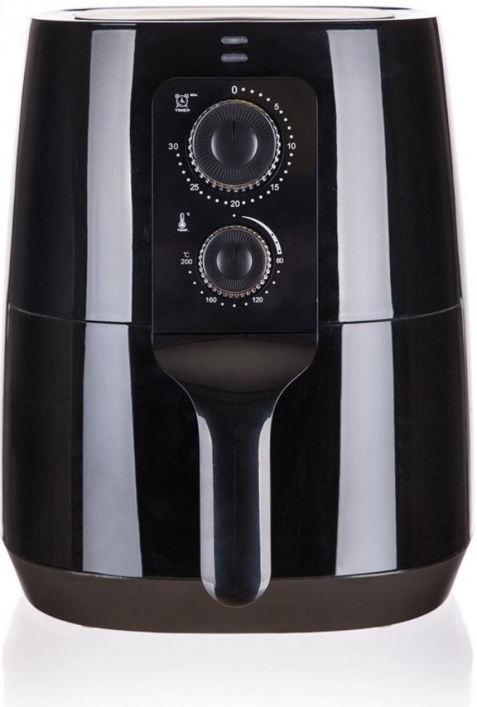 Horkovzdušná fritéza s příkonem 1300 W a celkovou kapacitou 3,2 l, je vybavena nádobou z nepřilnavého materiálu, nastavitelným termostatem a časovačem.