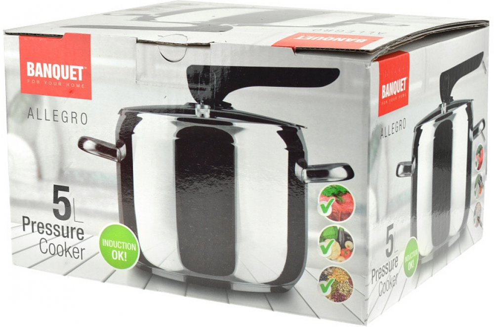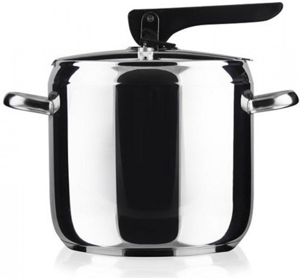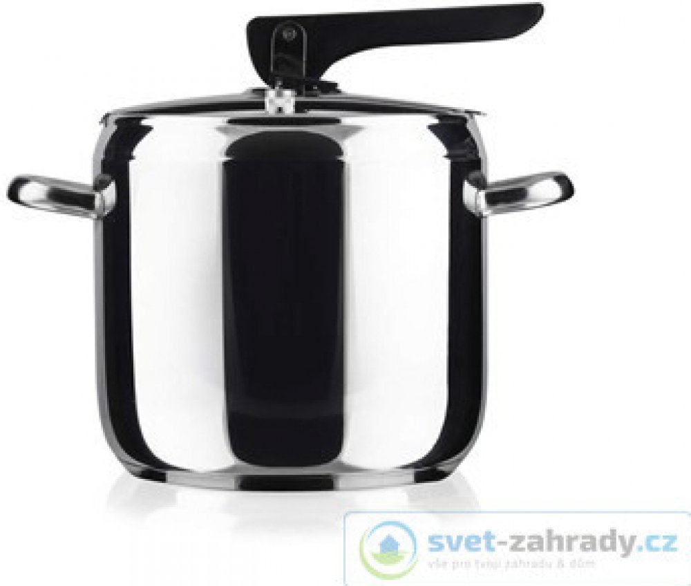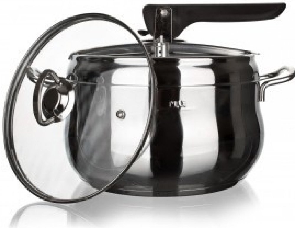 Nerezový tlakový hrnec o objemu 5 l. Víko obsahuje hlavní pracovní a pomocný ventil, což činí hrnec max. bezpečný. Sendvičové dno pro dokonalý rozvod tepla.