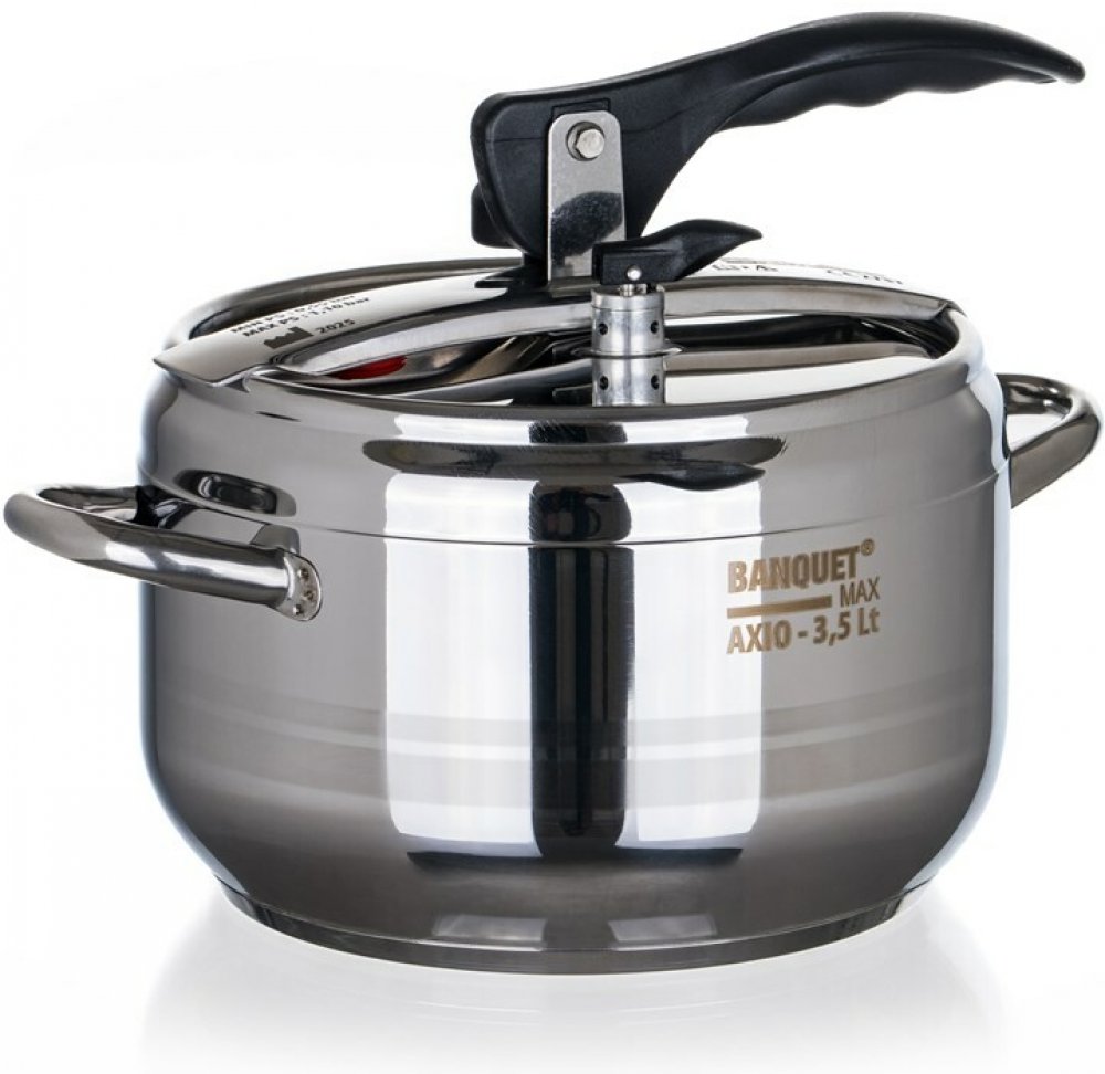 Nerezový tlakový hrnec 3,5 l s pákovým uzávěrem, průměr 20 cm, nerez 18/0, 3 ventily, silné sendvičové dno. Víko obsahuje tři ventily oproti předchozím modelům, hlavní pracovní ventil, bezpečnostní ventil a silikonový ventil pod přítlačnou sponou pro úplně bezpečné použití. Pákový uzávěr je zabezpečený proti náhodnému otevření. Díky speciálnímu tvaru a bezpečnostnímu ventilu nelze tlakový hrnec během vaření otevřít. Tlakový hrnec je určen pro rychlou přípravu pokrmů a lze jej používat na všechny typy varných desek vč. indukce. Hrnec je v silnostěnném celonerezovém provedení, má silné sendvičové dno a lze ho používat na všechny typy varných desek.