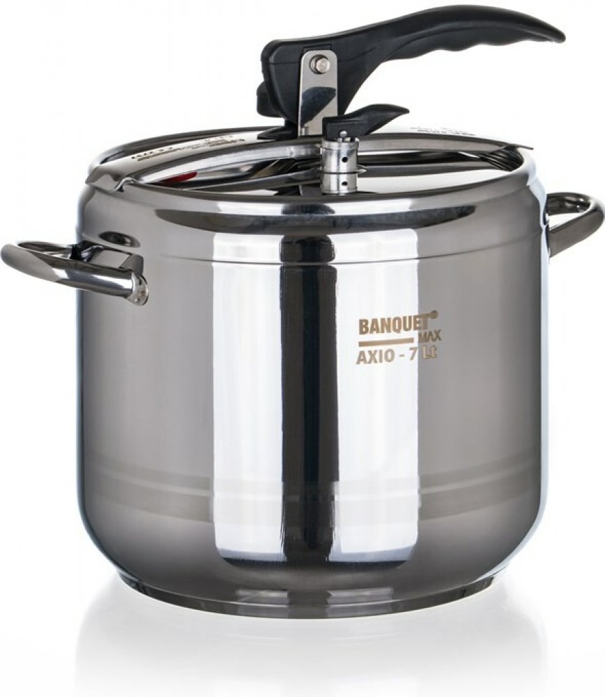 Nerezový tlakový hrnec Banquet AXIO o objemu 7 litrů slouží k rychlému a energeticky úspornému vaření bez ztráty přirozené chuti a důležitých živin. Materiálem je nerezová ocel. Silnostěnné provedení v kombinaci se sendvičovým dnem zaručuje rovnoměrnou distribuci tepla i dlouhou životnost. Tlakový hrnec Banquet AXIO je plně kompatibilní se všemi typy varných ploch, a to včetně indukčních desek. Di...