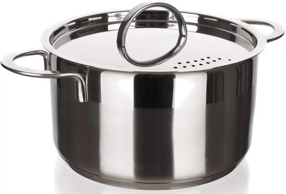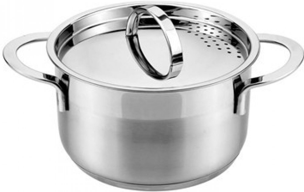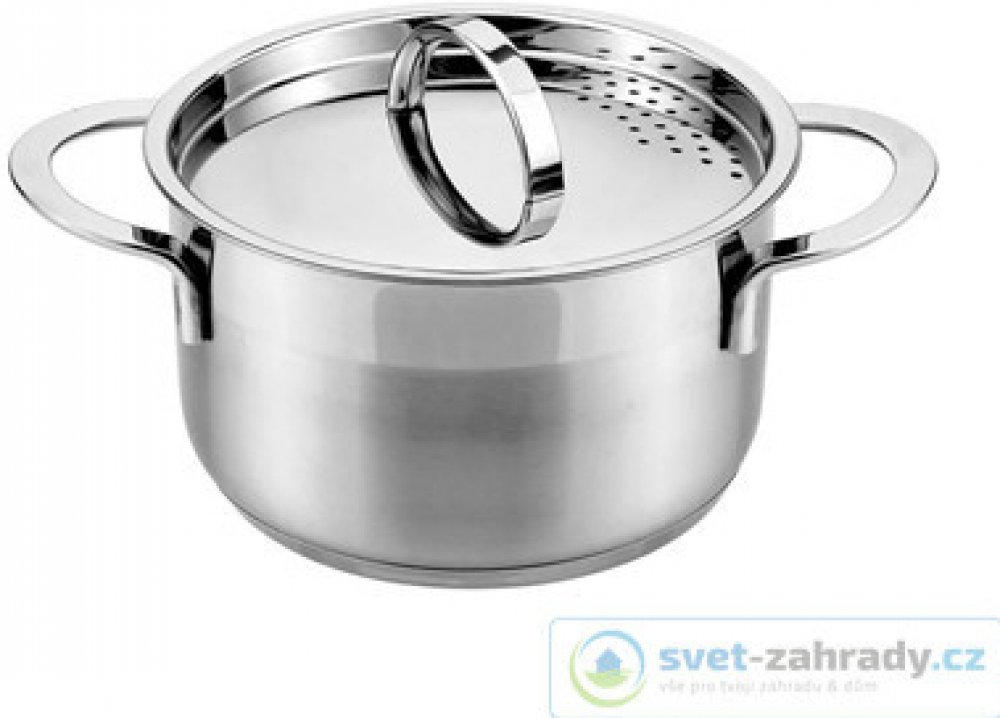 Nerezový hrnec o objemu 3,6 l s praktickou poklicí s dírkami pro slévání tekutin vhodný na všechny typy varných desek včetně indukce.