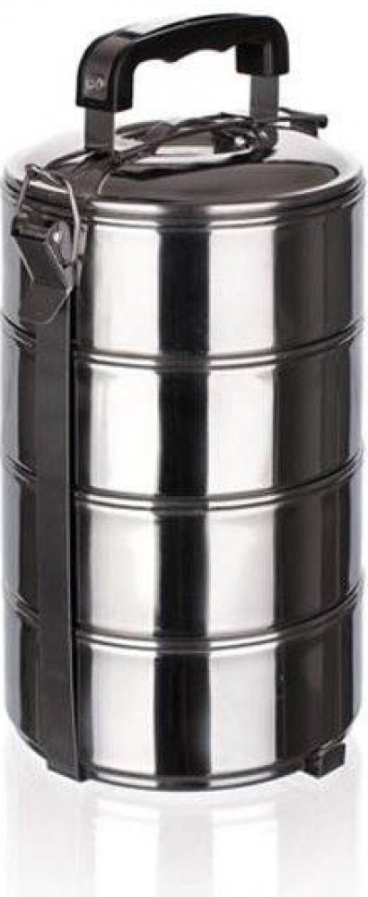 Nerezový čtyřdílný jídlonosič BANQUET Culinaria Store Line A03148 je užitečným pomocníkem pro přenášení pokrmů. Využijete ho zejména tehdy, když si chodíte pravidelně, ať už do restaurace nebo školní jídelny, pro obědy. Je vhodné mít ho doma i v případě, kdy je vaše dítě nemocné a vy mu vyzvedáváte oběd ve škole. Sada obsahuje čtyři nerezové misky o průměru 13 cm a výšce 5,7 cm. Misky se skládají na sebe, vrchní část je opatřena nerezovým víčkem. Pro pevné uzavření misek a vrchní poklice slouží kovový stojan s přezkou. Sada je vyrobena z kvalitní nerezové oceli. Doporučujeme nádoby nepřeplňovat a uchovávat/přenášet pouze ve svislé poloze, aby nedocházelo k vylití tekutin. Nádoby nejsou vodotěsné!Parametry a specifikace:Materiál:NerezPrůměr:13 cmVýška celé sady:21,8 cmVýška misek:5,7 cmTloušťka stěny:0,5 mmHmotnost:491 g