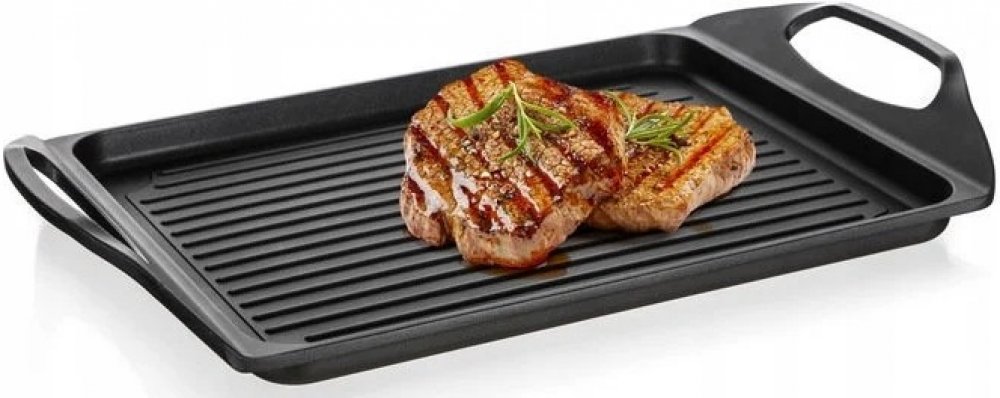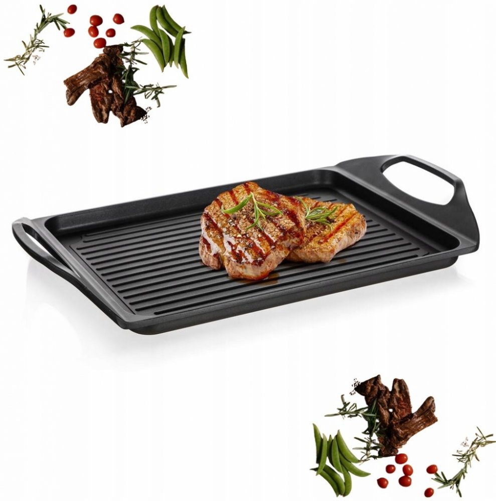 Deska na grilování 45 x 27 x 2,3 cm s 2vrstvým nepřilnavým povrchem je vhodná na pečení a grilování na sporáku, v troubě i venkovním grilu. Skvěle ji využijete při přípravě steaků, ryby, klobásek, zel