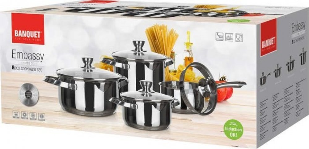 Pro každé vaření jsou potřeba nejen kvalitní suroviny, ale také nádobí. Nerezová sada nádobí BANQUET EMBASSY vám dá nezbytné základní vybavení kuchyně. Obsahuje jeden rendlík, dva různě velké kastroly a jeden vysoký hrnec. Pro všechny je k dispozici skleněná poklička s praktickým otvorem pro snadné slévání bez popálenin a vylití pokrmů. Hrnce mají zevnitř i zvenku lesklý povrch, uvnitř je navíc pr...