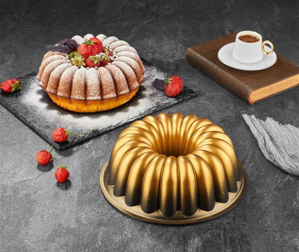 Litá hliníková pečící forma na bábovku o průměru 25 cm, MAJESTIC Solaris s nepřilnavým povrchem, pro pečení třených, kynutých a piškotových těst.