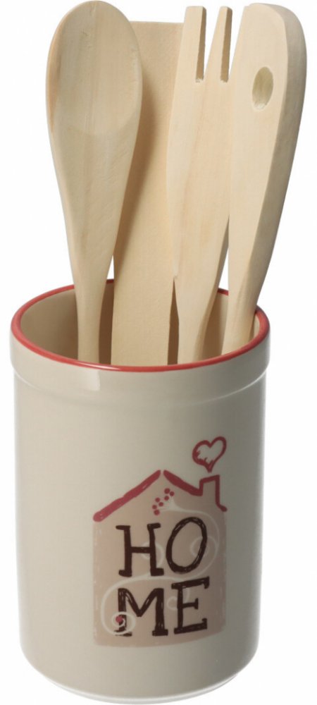Praktický set se skládá z praktické keramické dózy - 13,5 cm a 4 ks dřevěných vařeček různých typů. Dózu lze umývat v myčce, ale pro zachování dokonalého vzhledu doporučujeme umývat ručně.