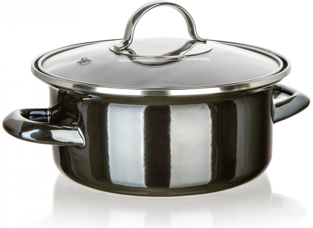 Smaltovaný hrnec METALLIC Black se skleněnou poklicí.