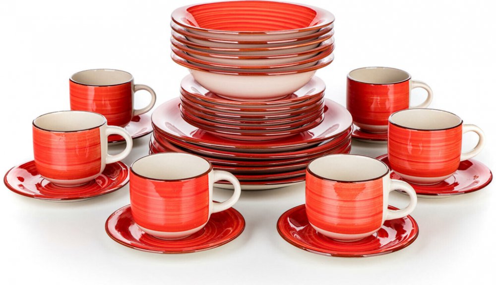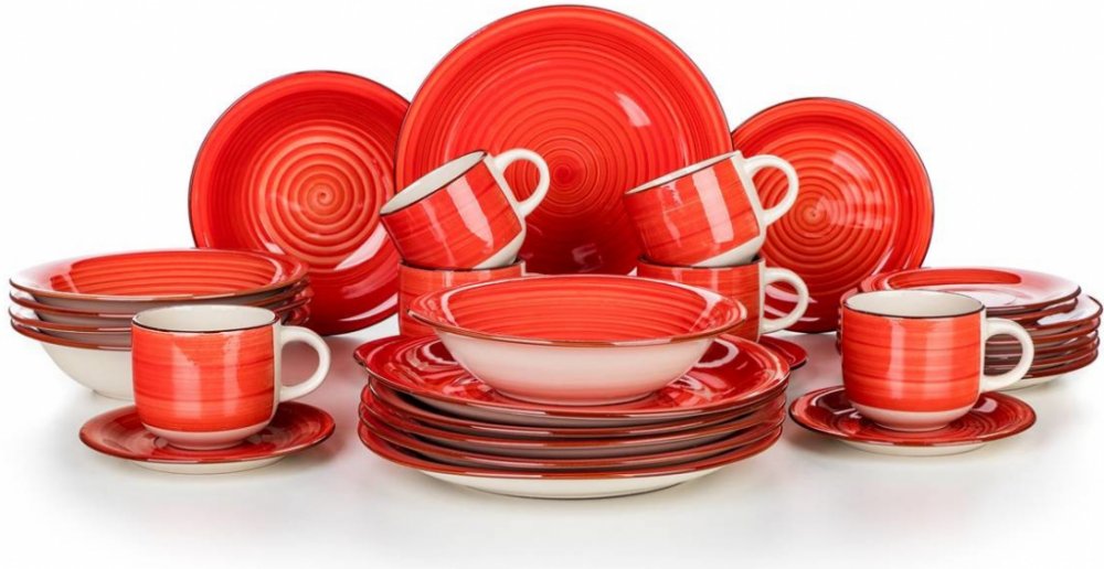 Sada jídelní SPIRAL RED, 30díl., keramická.