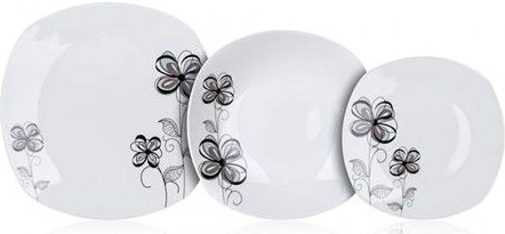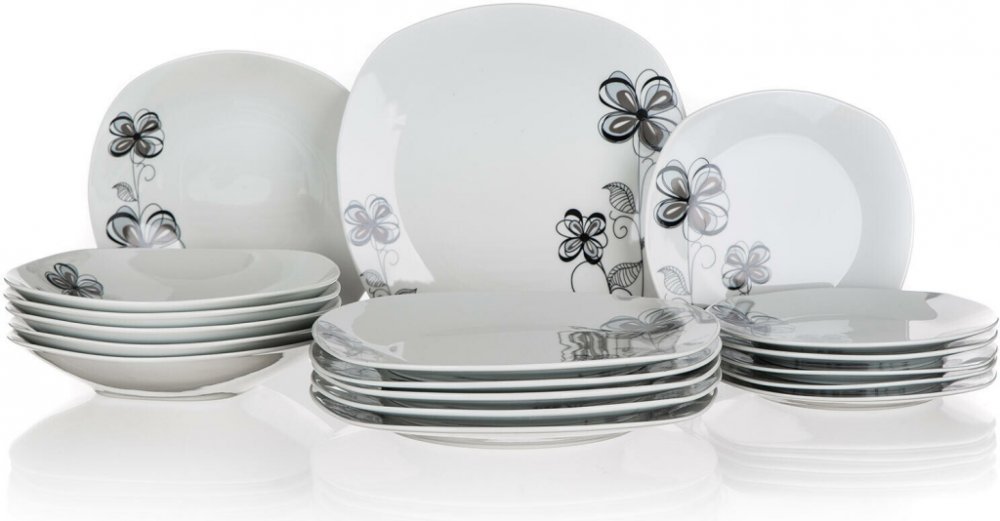 18dílná talířová sada square FLOREA je vyrobena z porcelánu.