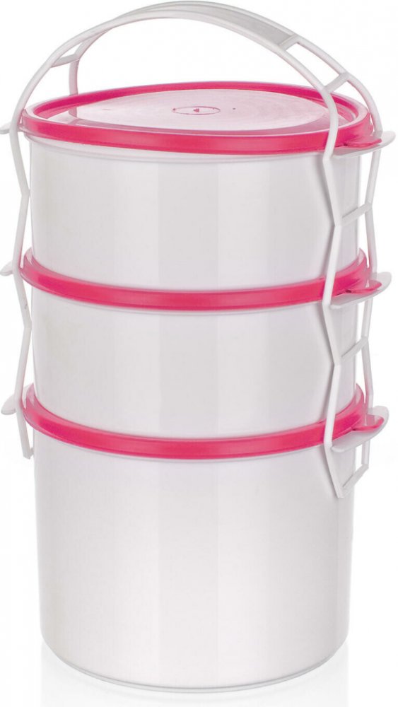 3dílný plastový jídlonosič se 3 dózami o objemu 2 x 1 l a 1,5 l je určený k přenášení potravin a hotových pokrmů. Dózy lze použít i samostatně pro skladování potravin v ledničce, mrazničce a ohřívání pokrmů v mikrovlnné troubě. Dózy jsou vyrobeny z odolného plastu, jsou použitelné při teplotách od -40 do +90 st.C a jsou vhodné do myčky na nádobí.