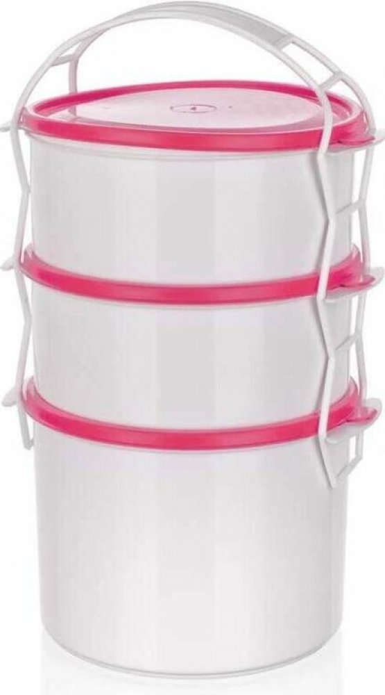 3dílný plastový jídlonosič se 3 dózami o objemu 2 x 1 l a 1,5 l je určený k přenášení potravin a hotových pokrmů. Dózy lze použít i samostatně pro skladování potravin v ledničce, mrazničce a ohřívání pokrmů v mikrovlnné troubě. Dózy jsou vyrobeny z odolného plastu, jsou použitelné při teplotách od -40 do +90 st.C a jsou vhodné do myčky na nádobí.