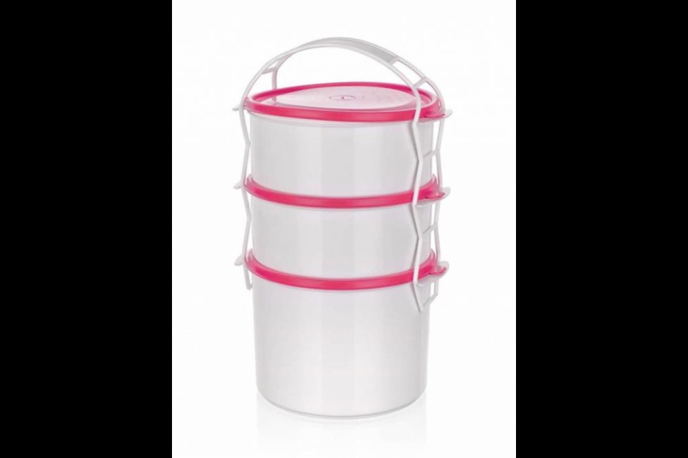 3dílný plastový jídlonosič se 3 dózami o objemu 2 x 1 l a 1,5 l je určený k přenášení potravin a hotových pokrmů. Dózy lze použít i samostatně pro skladování potravin v ledničce, mrazničce a ohřívání pokrmů v mikrovlnné troubě. Dózy jsou vyrobenyz odolného plastu, jsou použitelné při teplotách od -40 do +90 st.C a jsou vhodné do myčky na nádobí.
