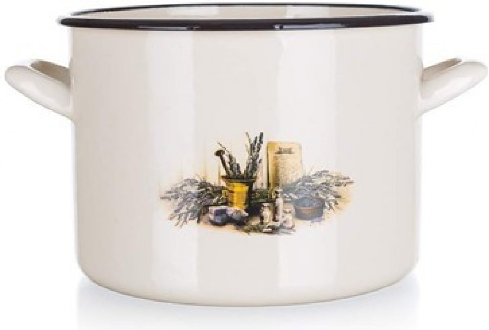 Hrnec smaltovaný 25 x 21,5 cm LAVENDER, vyrobeno z plechu tl. 0,8 mm, 2-vrstvý smaltovaný vnitřní a vnější povlak s dekorem LEVANDULE, rolovaný okraj.