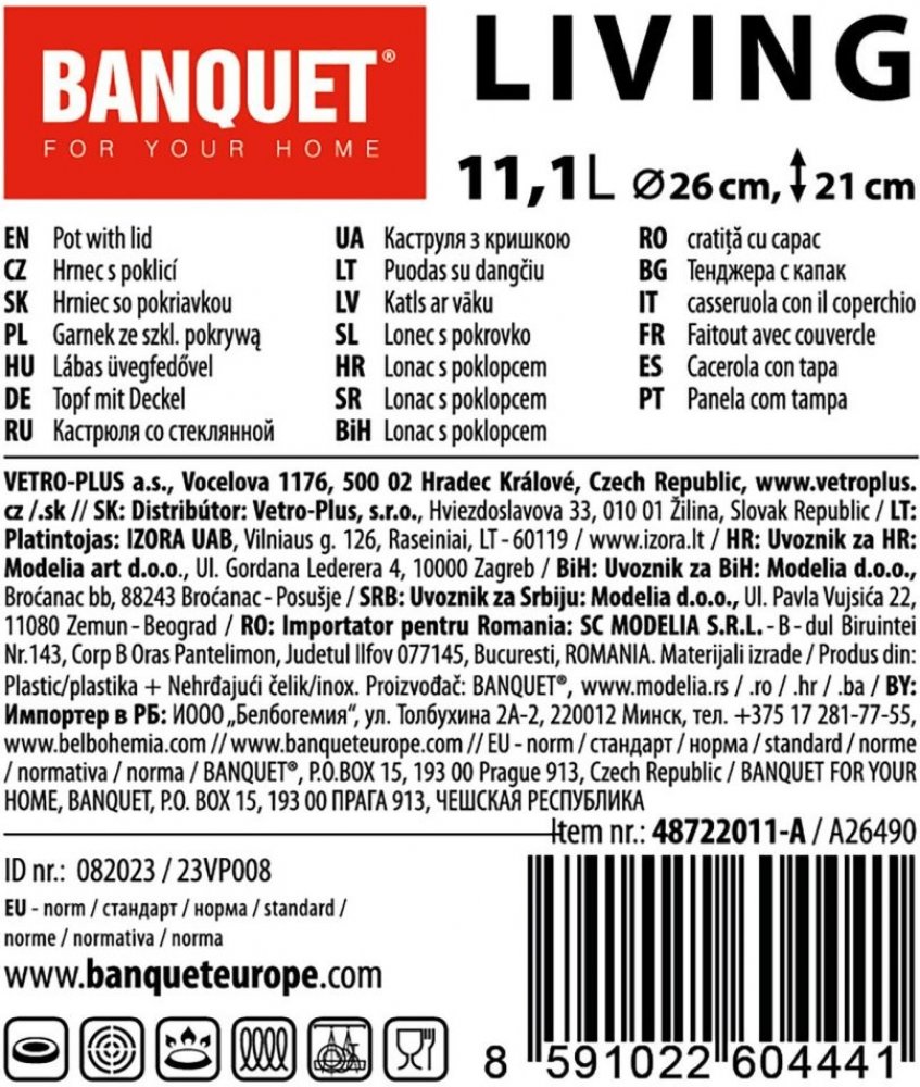 1.97 kg 26 cm nerezové 11.1 l hrnce 2.5 mm Banquet 21 cm stříbrné