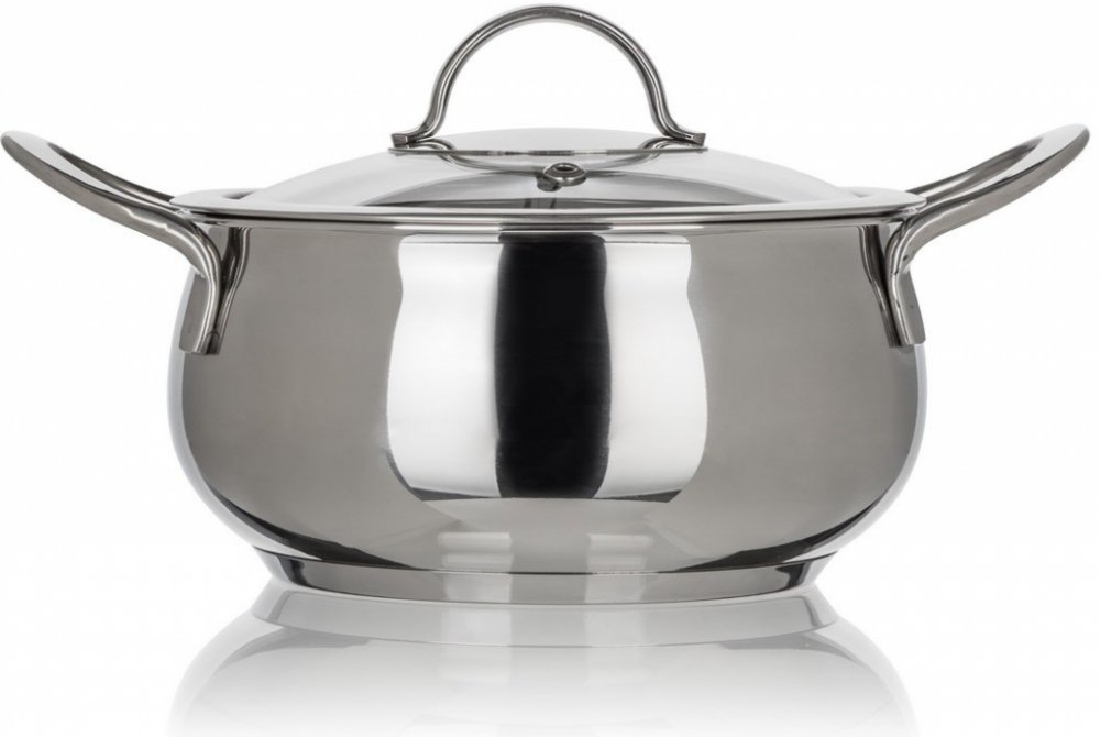 Nerezový kastrol PICCOLO Belly, se skleněnou poklicí, lze používat na všechny typy varných desek včetně indukce.