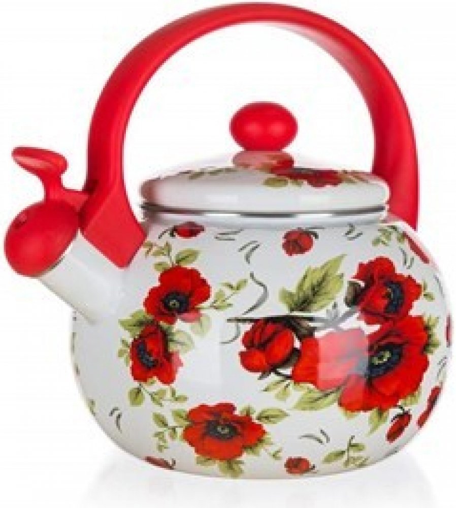 Smaltovaná pískací konvice od značky Banquet s vyobrazením vlčího máku je vyrobena z ocelového plátu se dvěma vrstvami smaltovaného nástřiku.Ideální pro přípravu horké vody na čaj, tato konvice bude sloužit i jako dekorace do každé kuchyně. Pro bezpečný úchop je opatřena plastovým držadlem.