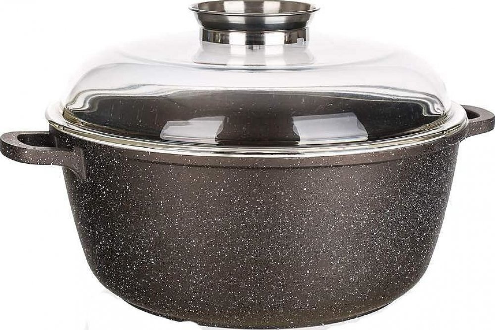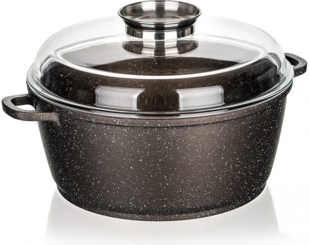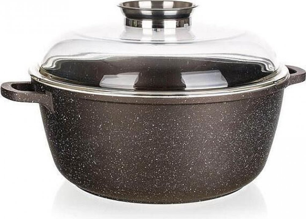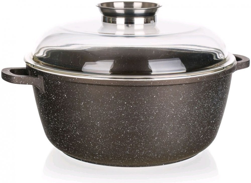 Hliníkový litý kovaný vysoký hrnec PREMIUM DARK BROWN s nepřílnavým povrchem, se skleněnou termo poklicí a aroma knobem.