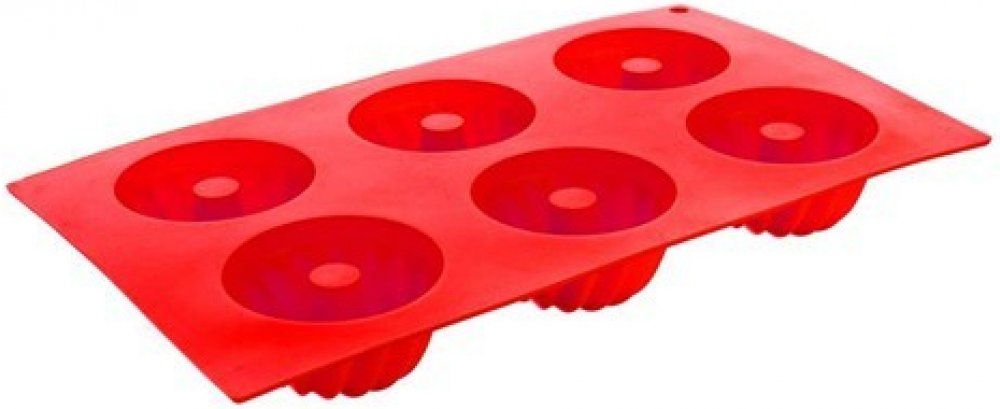 Silikonová forma na 6 ks mini báboviček CULINARIA Red, rozměry: 29,5 x 17,5 x 3,5 cm. Forma je odolná vysokým teplotám (do 240 st.C), neváže chutě ani pachy pokrmů, snadno se udržuje (lze mýt v myčce na nádobí). Silikon je velmi populární materiál, který pro své jedinečné vlastnosti našel své uplatnění i v kuchyni. Vyrábí se z něj různé druhy forem na pečení, vály a válečky na těsto, stěrky, mašlo...