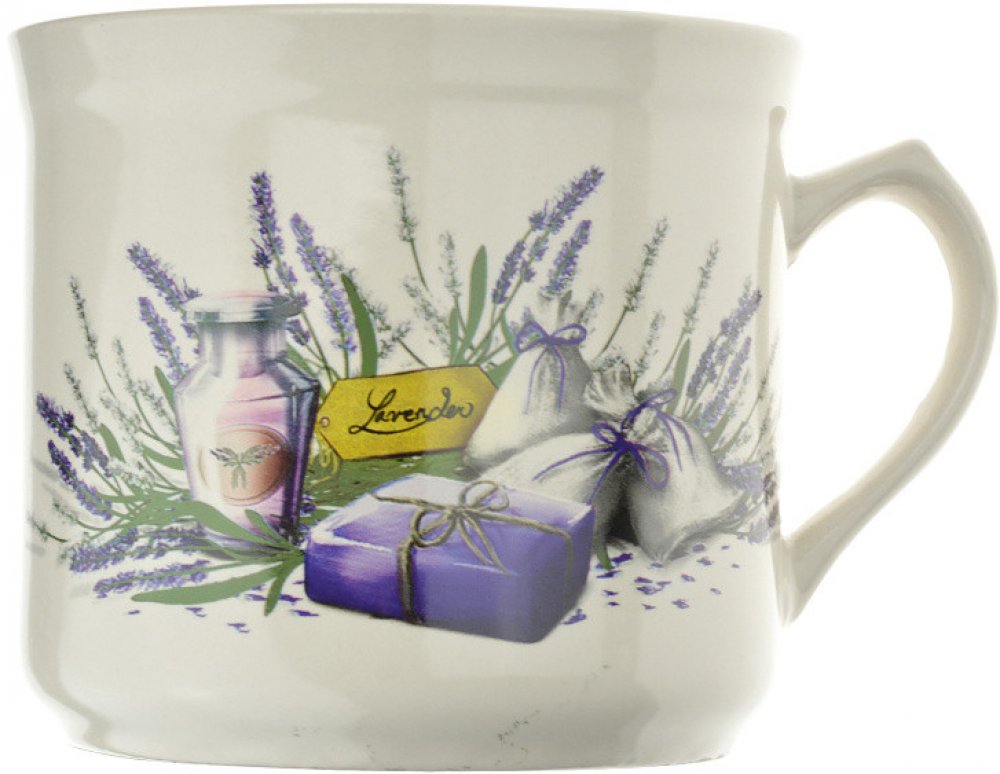 Keramický hrnek BIG 630 ml LAVENDER. Výška 10 cm, průměr 11 cm. Dvoubarevná glazura s dekorem levandule. Hrnek lze používat do mikrovlnné trouby a mýt v myčce na nádobí (při běžném domácím užití). EAN 8591022353523