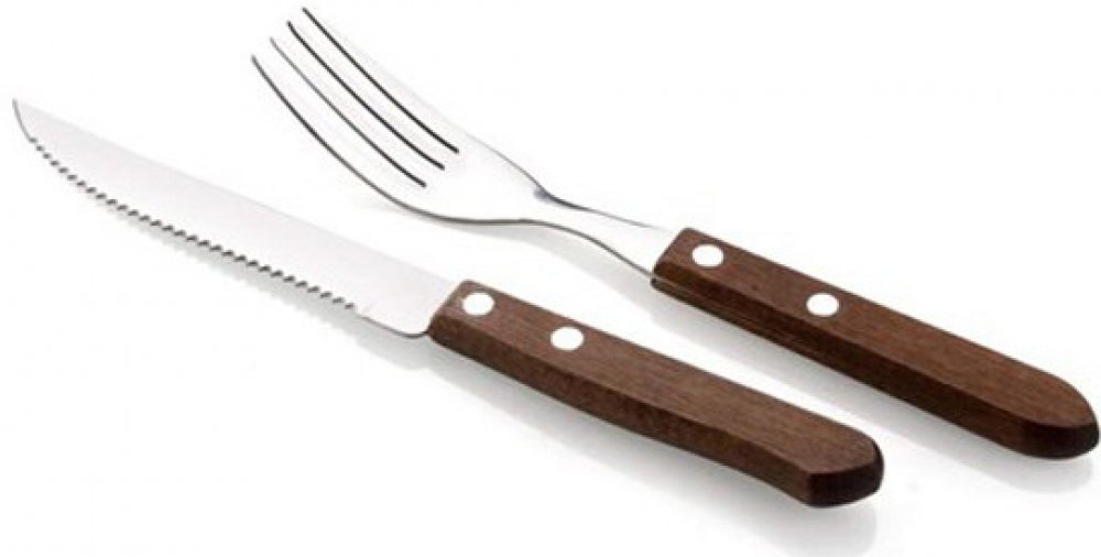 Příbor steakový BBQ (6 + 6 ks) nerez, dřevěná rukojeť, tmavá. materiál: nerez ocel, tmavá dřevěná rukojeť povrchová úprava čepele lesk nůž: - celková délka: 20,6 cm - délka čepele: 11,5 cm - síla držadla: 0,9 cm - síla čepele: 1,2 mm vidlička: - celková délka: 18,7 cm - délka čepele: 9,6 cm - síla držadla: 0,9 cm - síla čepele: 1,5 mm sada 12 kusů (6+6) Steakové příbory se hodí nejen pro domácí vy...