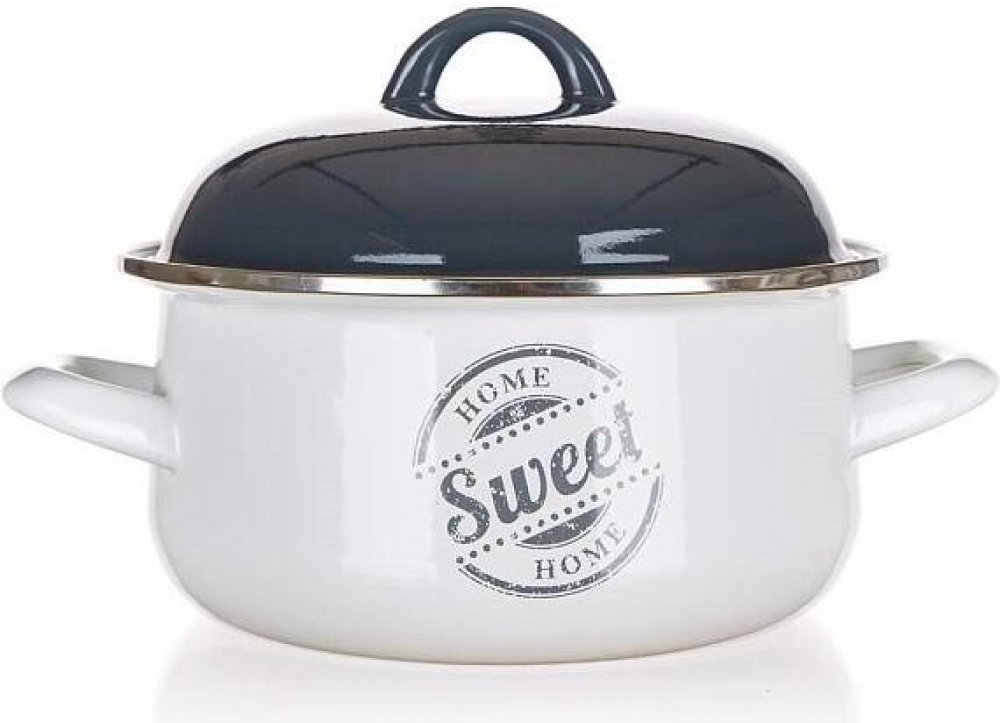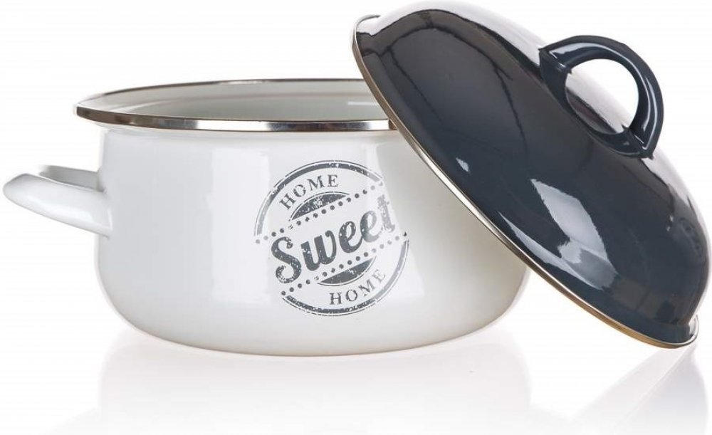 Smaltovaný kastrol o průměru 20 cm v bílé barvě s dekorem SWEET HOME a s poklicí v šedé barvě je vhodný na vaření různých pokrmů. Můžete mýt v myčce na nádobí. V nabídce máme další produkty z kolekce