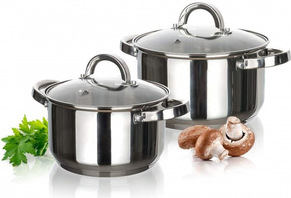 Tloušťka dna: 0,4 mm nerez / 0,5 mm hliník / 1 mm železo / 0,5 mm hliník / 0,4 mm indukční protektor. Poklice jsou vyrobeny z odolného skla a mají otvor na páru pro dokonalou kontrolu nad vařením.