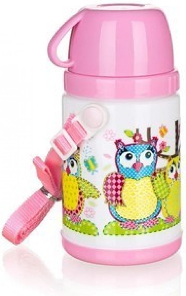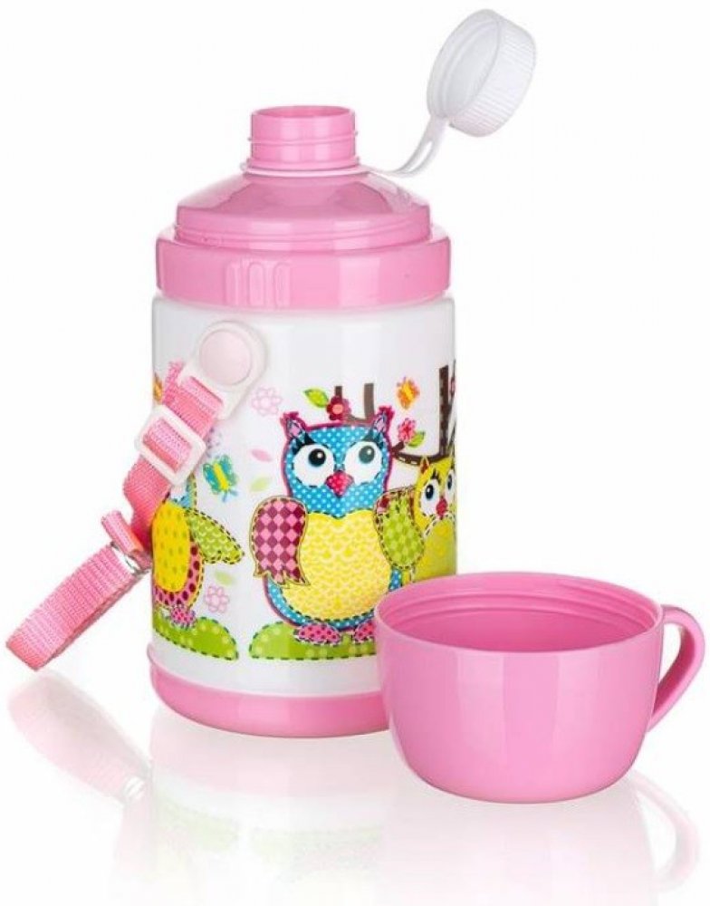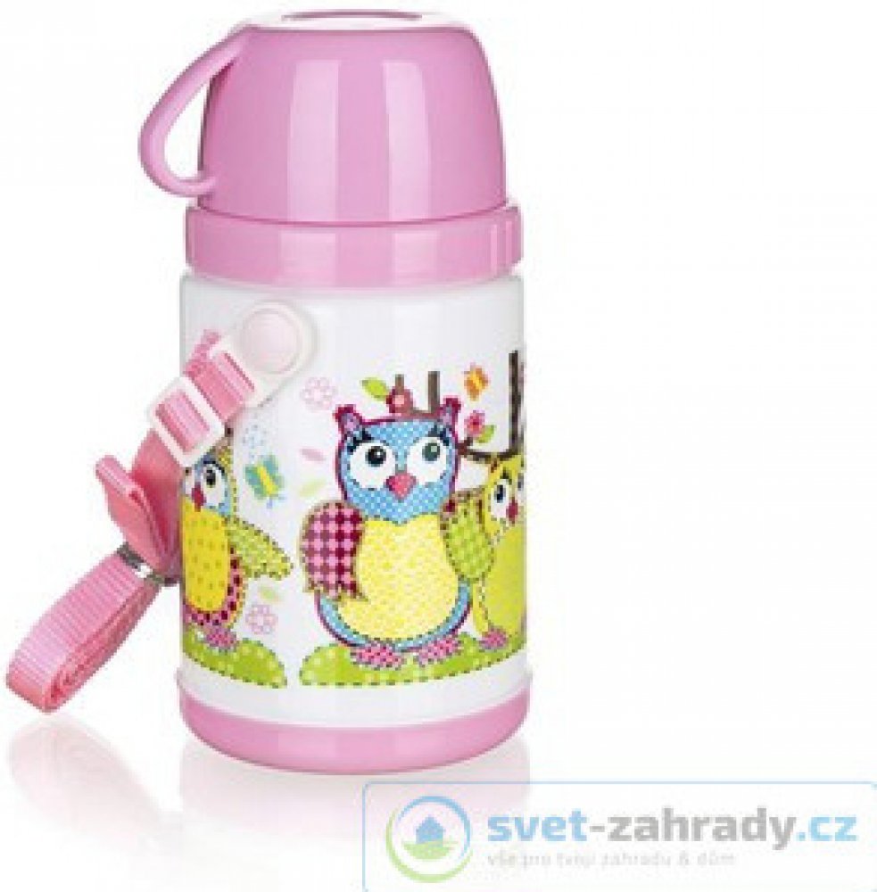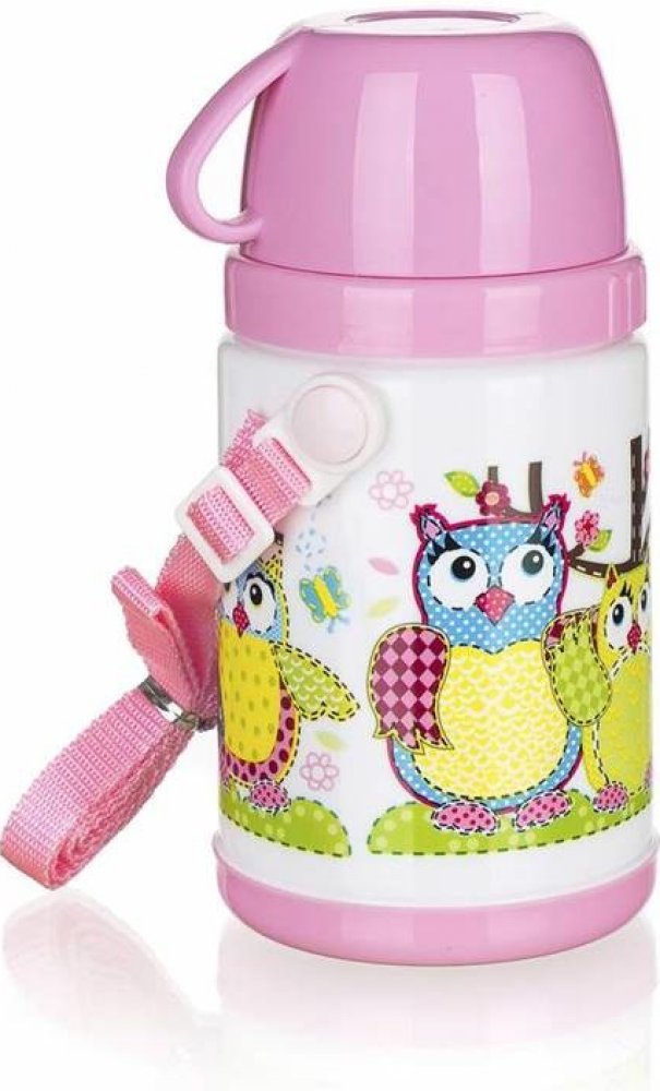 Termoláhev s hrnkem OWLS Pink 320 ml je vyrobena z plastu s dekorem sovy. Láhev využijete do školy i na výlety do přírody. Láhev je opatřena praktickým poutkem a hrnečkem s uchem.