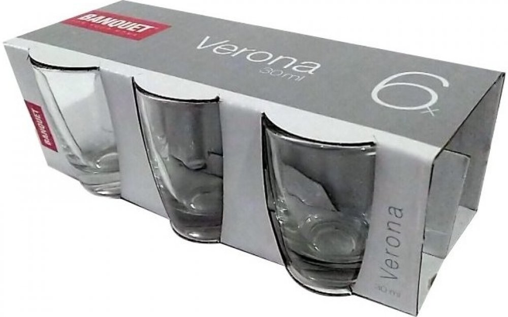 6dílná sada odlivek VERONA 30 ml se skládá z čirých skleněných odlivek se silnější stěnou.