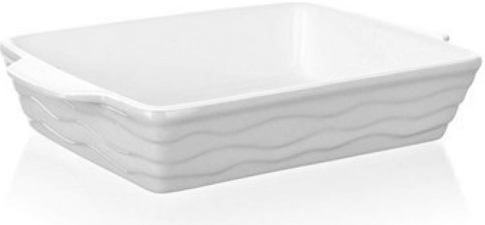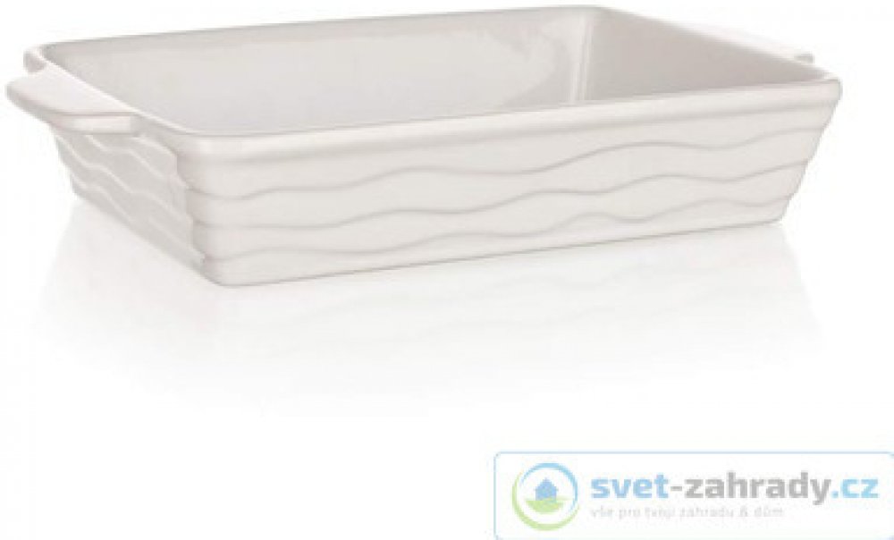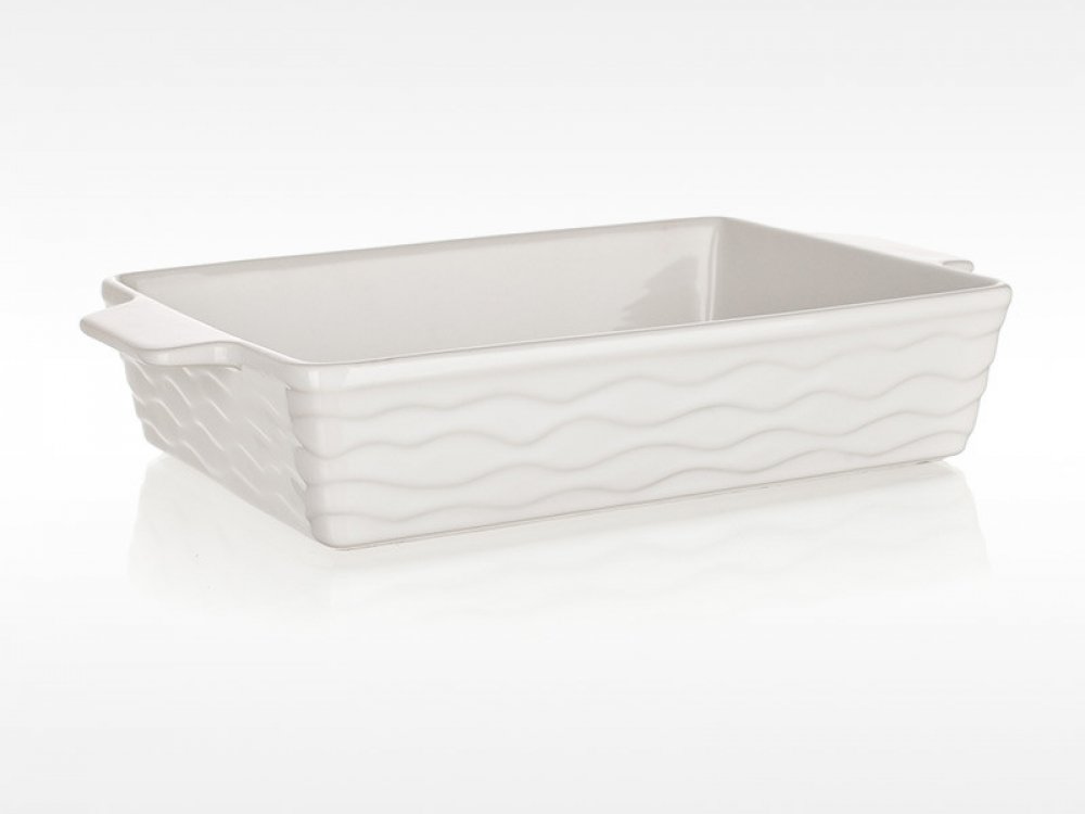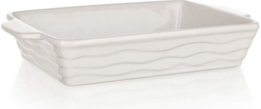 Keramická obdélníková zapékací forma s praktickými držadly pro snadnou manipulaci. Vnější povrch je s vlnkovým reliéfem. Keramika patří mezi oblíbené materiály ověřené mnoha generacemi. Přes širokou nabídku forem na pečení z moderních materiálů patří stále mezi nejžádanější.