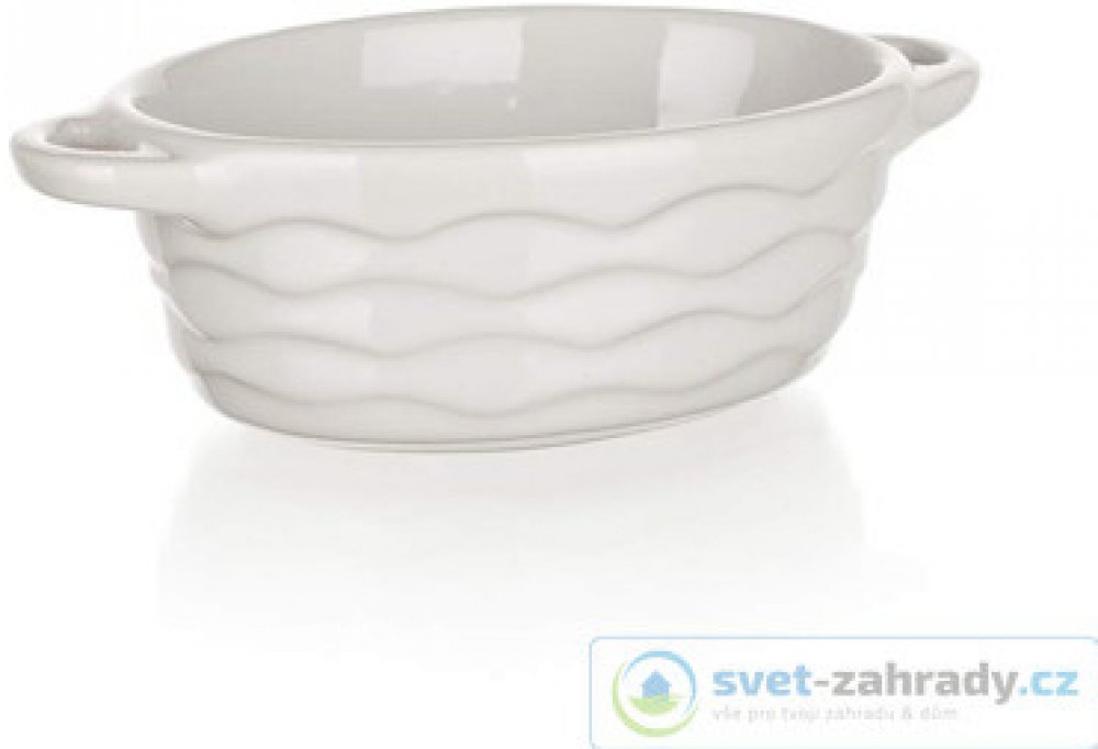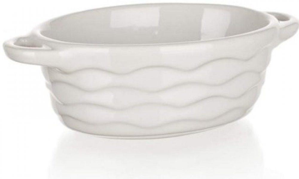 Keramická oválná zapékací forma 15 x 9 cm CULINARIA White s praktickými držadly pro snadnou manipulaci, výška formy 5 cm, bílá glazura, vnější strana formy má vlnkový reliéf. Keramika patří mezi oblíbené materiály ověřené mnoha generacemi. Přes širokou nabídku forem na pečení z moderních materiálů patří stále mezi nejžádanější.