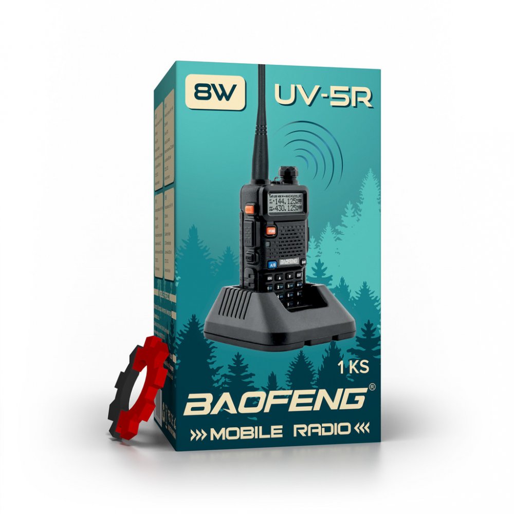 Vysílačka od značky Baofeng. Model UR-5R je tak zvaný dual-band, to znamená že je schopný pracovat jak na VHF tak i na UHF.