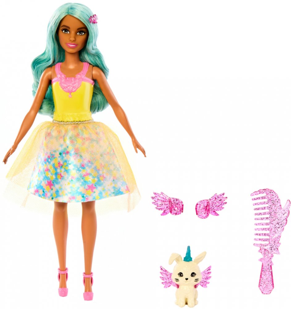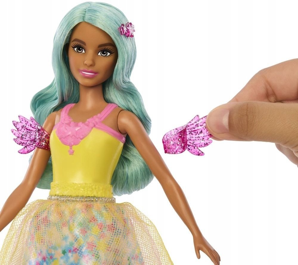 Tato panenka Barbie dodává hře s vlasy kouzelný nádech s vlnami fantazie! Děti mohou pročesat její modrozelené vlasy pomocí přiloženého hřebene.