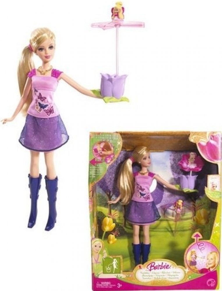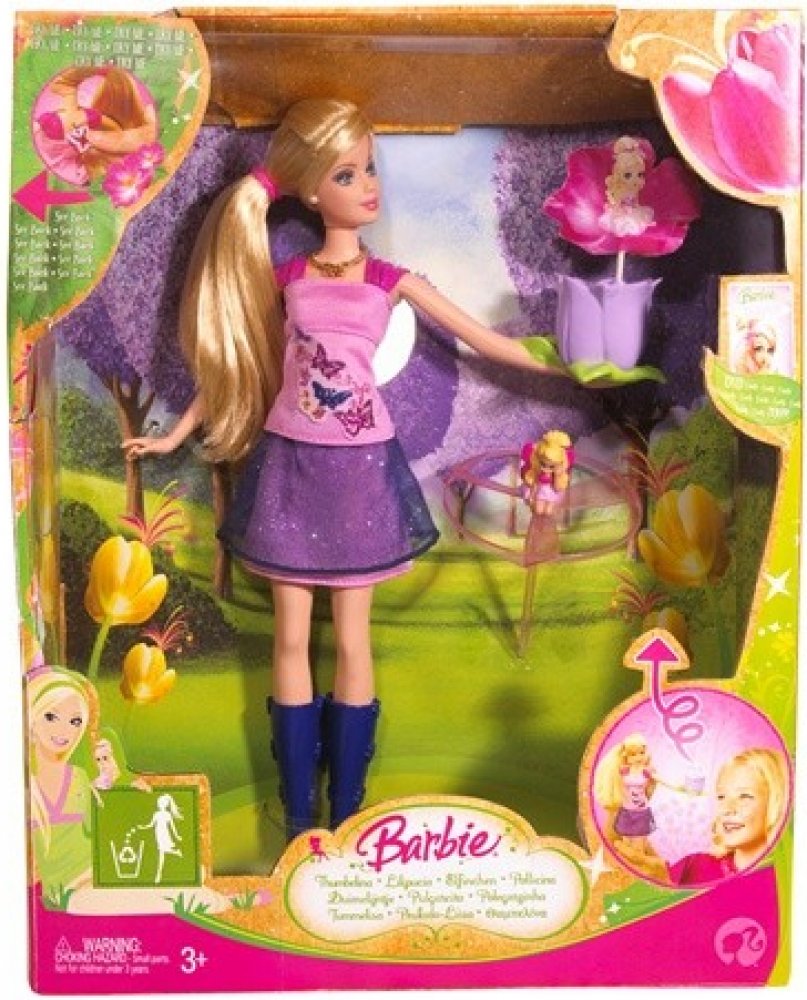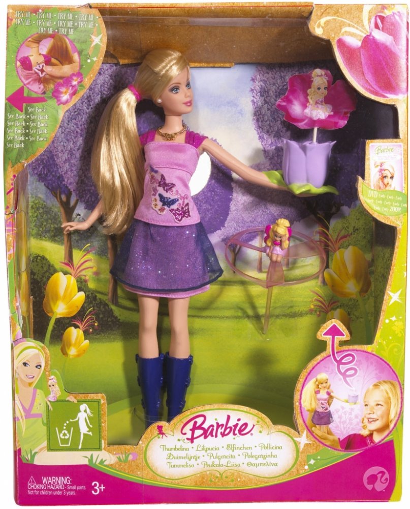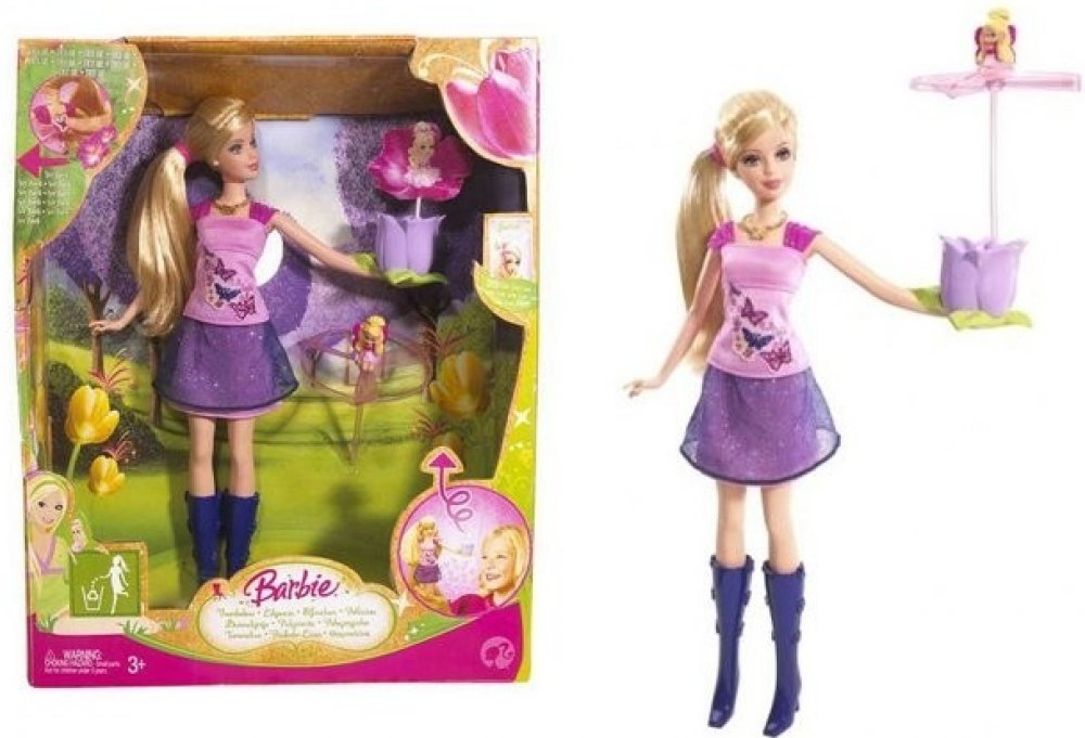 Pořiďte Vašim princeznám krásnou Barbie panenku, která je ozvláštněna květinou, ve které odpočívá malinkatá víla Thumbelina. Okouzlující okamžik Vás však čeká po zmáčknutí tlačítka, kdy se květina rozevře a víla znenadání roztáhne své doposud utajované fialové křídla. Užijte si s panenkou Barbie krásné okamžiky, které nejsou jen snem, ve kterém se zjevují víly. Barbie je jako vždy dokonale sladěná...