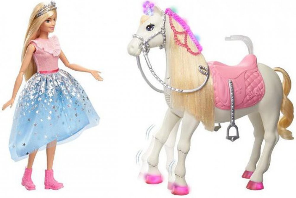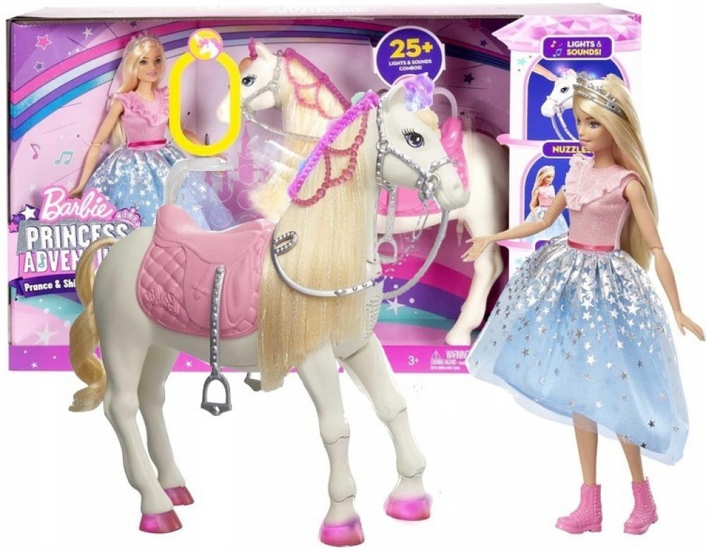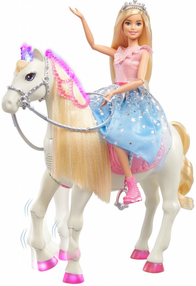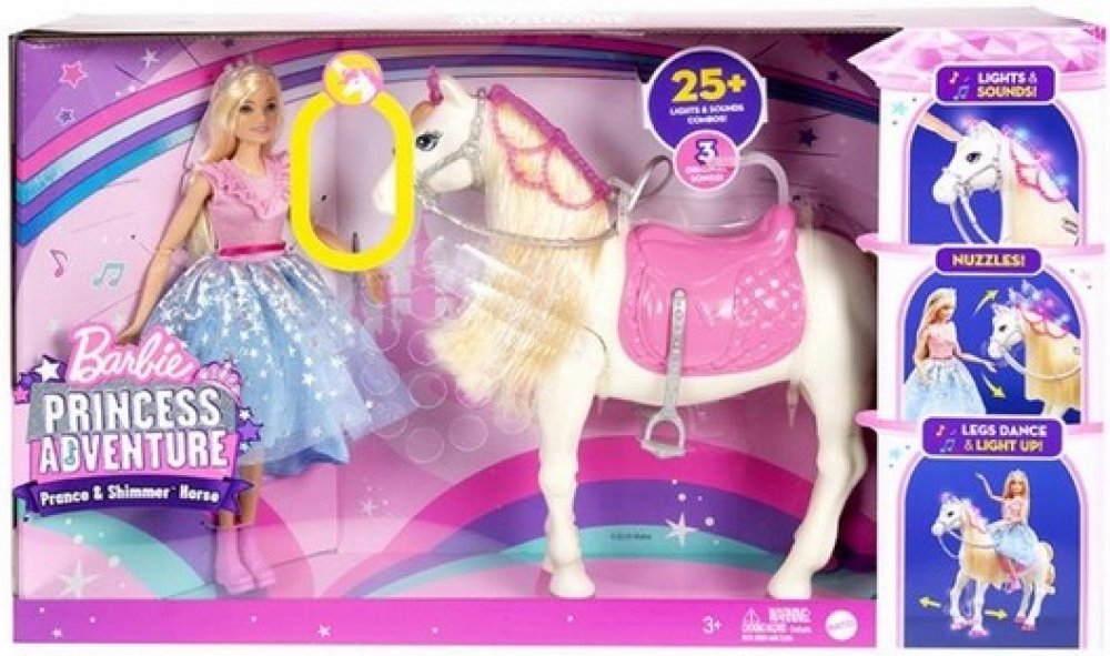 Připoj se k panence Barbie a vydejte se společně s jejím koníkem na cestu plnou kouzelných dobrodružství. Tato kolekce je inspirována oblíbeným filmem Princess Adventure, který vznikl na motivy populárního seriálu Barbie Dreamhouse Adventures. S panenčiným koníkem si užiješ spoustu zábavy. Koník se umí skutečně pohybovat a dokonce vydává i zvuky a svítí. Stiskni jeho čelo a sleduj, jak začne pokyv...