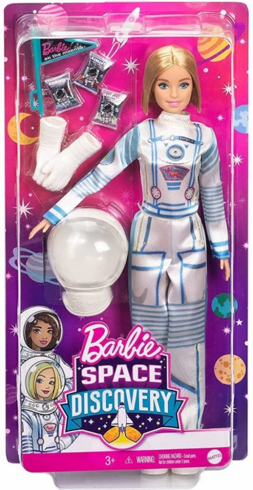 Inspirujte představivost a vzlétněte do nových světů s panenkami a hračkami Barbie® Space Discovery™ - Vesmírná dobrodružství. Panenka astronaut Barbie® je připravena zahájit nový příběh s vybavením potřebným k tomu, aby se vydala na cestu – třpytivým skafandrem, helmou a rukavicemi.