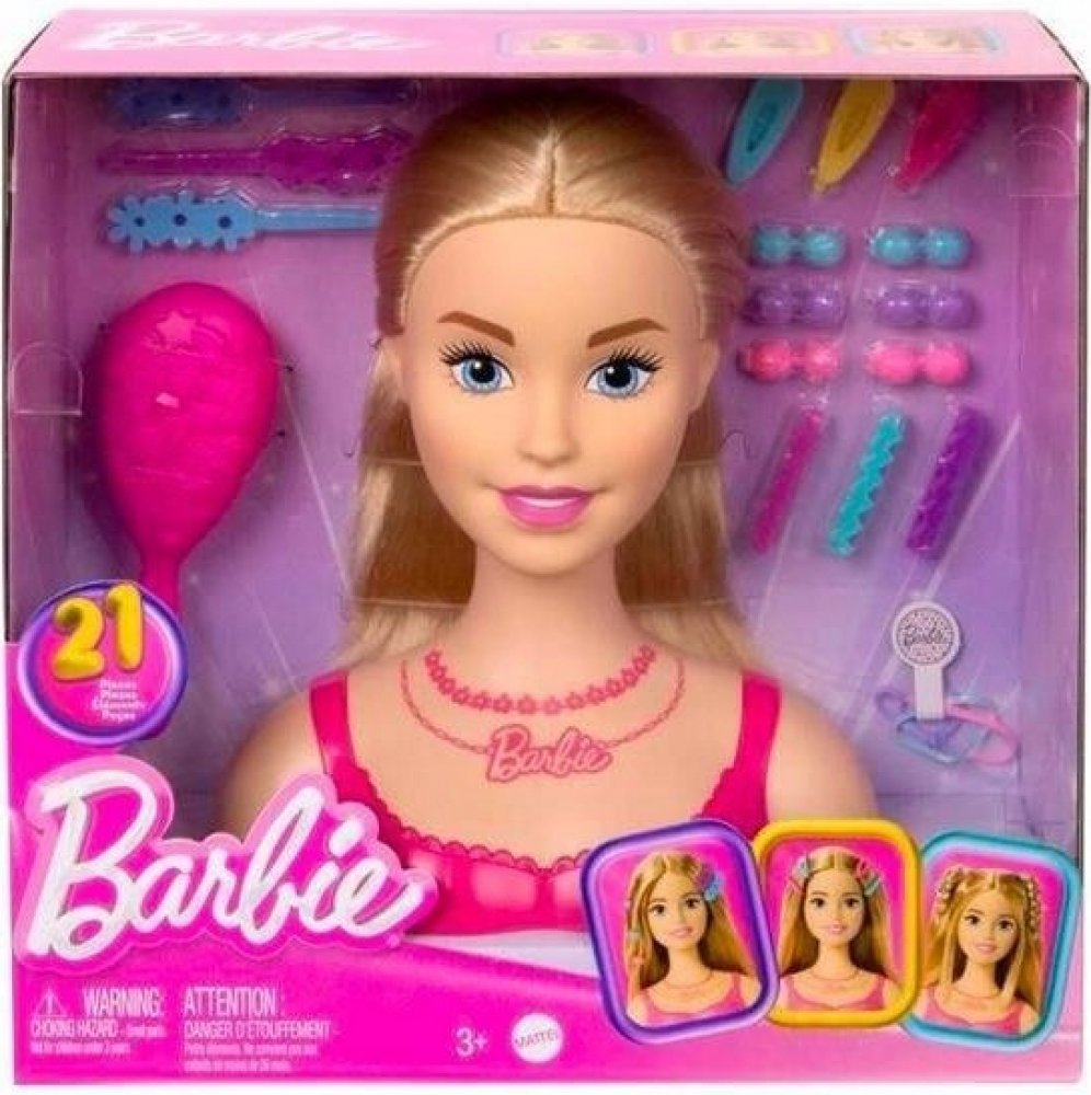 S roztomilou stylovou hlavou Barbie se děti mohou vžít do role kreativních kadeřníků a stylistů. Tato sada umožňuje vytvářet nespočet účesů na rovných blond vlasech a rozvíjí tak představivost a smysl pro estetiku.