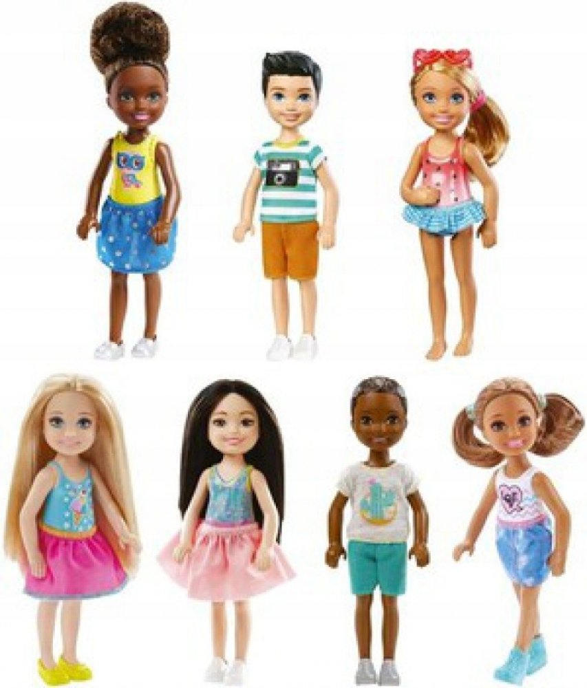 Chelsea™ a její kamarádky jsou připraveny na všechna skvělá dobrodružství. 7 roztomilých barevných panenek má kartonové tematické prvky pro rozvíjení vyprávěných příběhů. Připevněte je k ruce panenky, aby příběhy získaly realismus. Vyberte si z oblíbených motivů, jako je plavání, květiny, zmrzlina, motýli, draky, filmy a dobroty. Rozmanitost stylů a účesů nabízí mnoho možností pro kreativní herní scénáře. Shromážděte je všechny a zahrajte si vysněné příběhy! V balení je panenka v oblečení a tematický kartonový prvek.